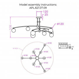 Тип цоколяE14 Мощность, Вт480 Степень защитыIP20 Высота, мм680 Диаметр, мм810