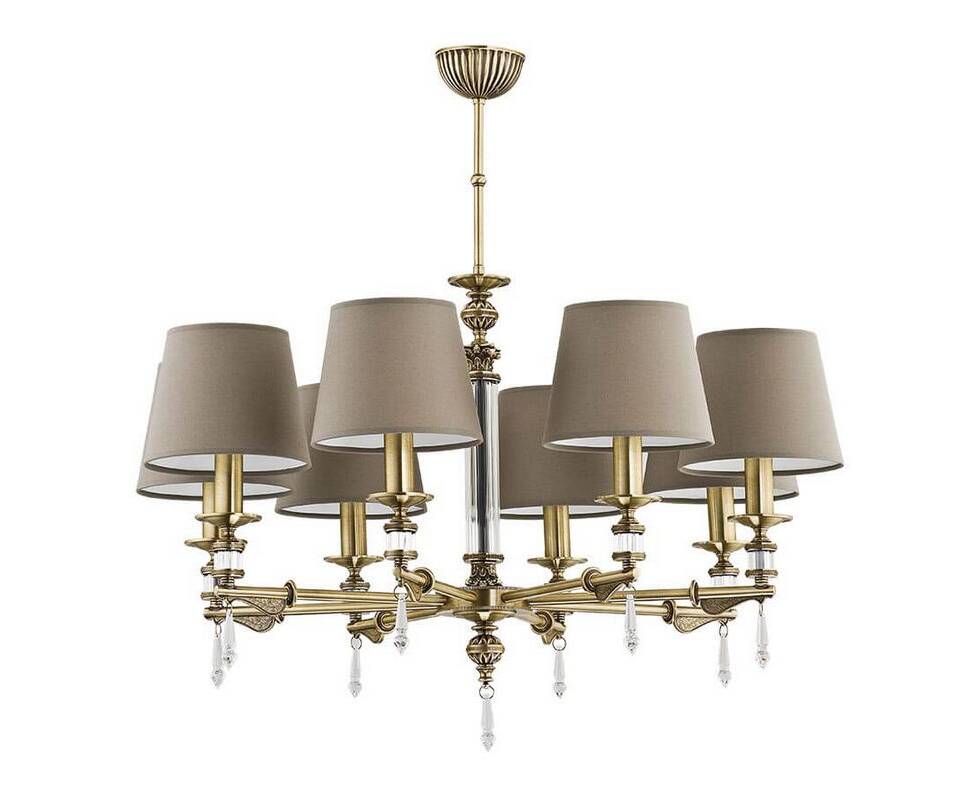 Потрясающая потолочная люстра на штанге MER-ZW-8(P/A) Merano Abazur от польской компании Kutek замечательно подойдет для гостиной в американском стиле. Каркас из латуни бронзового цвета, 8 ламп с цоколем E14 и тканевые абажуры придают данной модели потрясающий внешний вид. Производитель рекомендует использовать в данной модели лампы накаливания или эквивалентные по световому потоку светодиодные лампы (в комплект не входят). Модель MER-ZW-8(P/A) Merano Abazur можно устанавливать на натяжной потолок. *При установке на натяжной потолок допускается использовать только светодиодные LED лампы. Родиной бренда Kutek является ПОЛЬША. Заявленный производителем Kutek гарантийный срок составляет 2 года. Подвесная люстра Kutek Merano Abazur MER-ZW-8 (P/A) будет отличным выбором для покупки в интернет-магазине ГиперСвет. Мы оперативно доставим Ваш заказ по Калуге, Москве или в любой другой регион России.