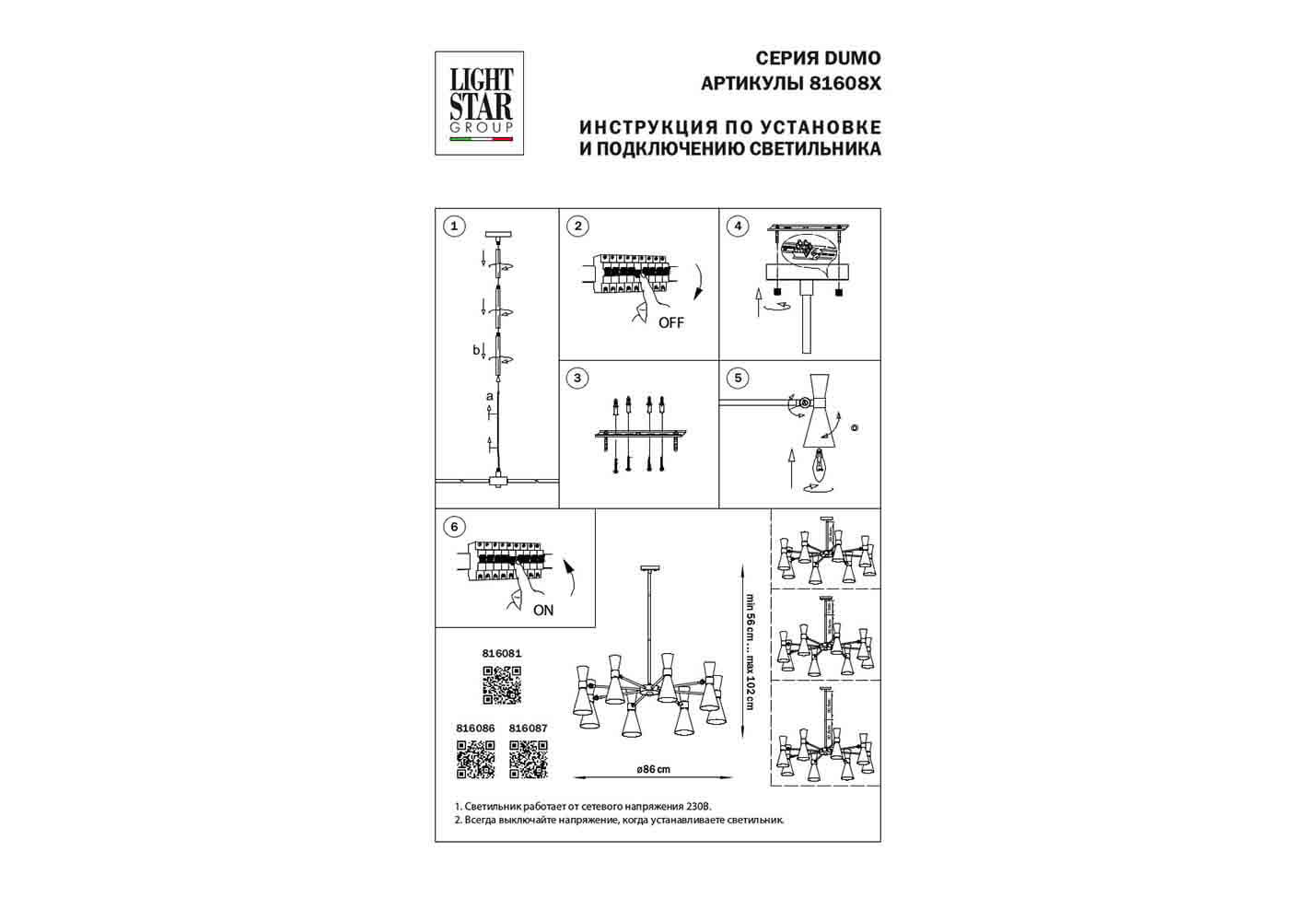Потрясающая потолочная люстра на штанге 816087 Dumo от итальянской фирмы Lightstar отлично подойдет для гостиной в современном дизайне. Каркас из металла золотого цвета, 8 ламп с цоколем E14 и черные металличекие плафоны придают данной модели потрясающий внешний вид. Производитель рекомендует использовать в данной модели лампы накаливания или эквивалентные по световому потоку светодиодные лампы (в комплект не входят). Модель 816087 Dumo можно устанавливать на натяжной потолок с использованием стандартной монтажной планки. *При установке на натяжной потолок допускается использовать только светодиодные LED лампы. Родиной бренда Lightstar является ИТАЛИЯ. Сборочное производство компании расположено в Китае, однако, это никак не сказывается на качестве продукции. Заявленный производителем Lightstar гарантийный срок составляет 12 месяцев. Подвесная люстра Lightstar Dumo 816087 будет отличным выбором для покупки в интернет-магазине ГиперСвет. Мы оперативно доставим Ваш заказ по Калуге, Москве или в любой другой регион России.
