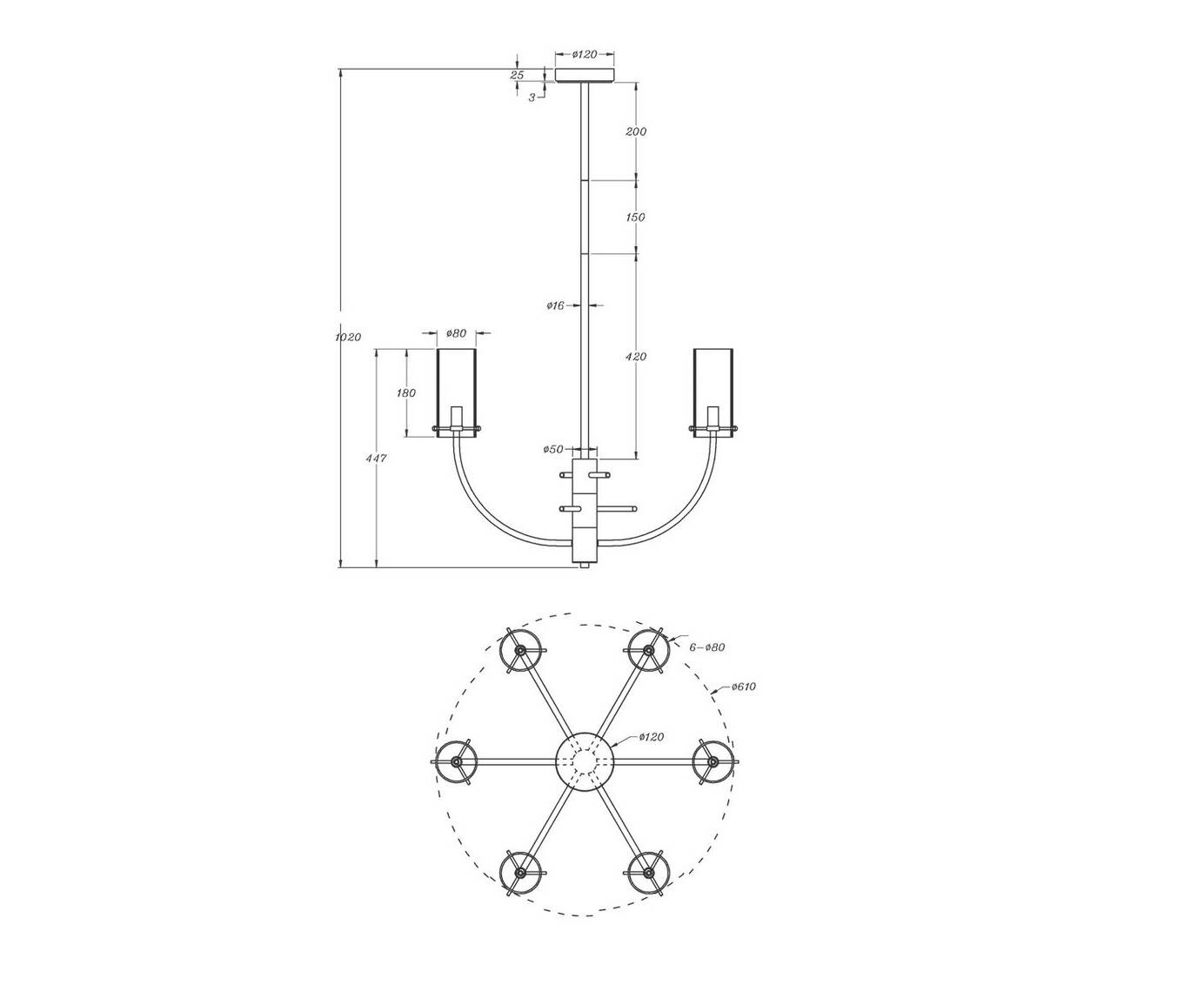 Длина подвеса, мм: