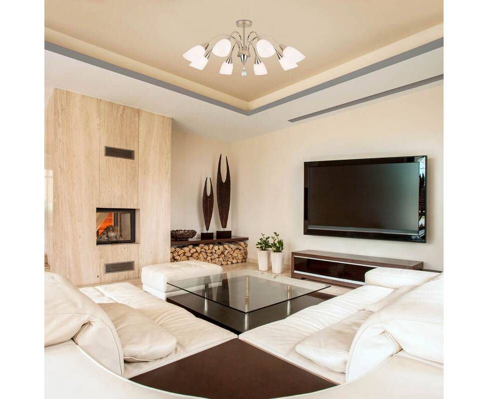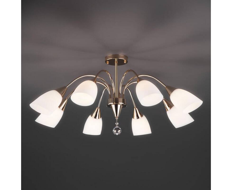Потолочная люстра 30149/8 золото Ellene от российской компании Eurosvet сделает уникальным и неповторимым интерьер гостиной в современном стиле. Каркас из металла золотого цвета, 8 ламп с цоколем E27 и белые стеклянные плафоны придают данной модели уникальный внешний вид. Люстра осветит комнату площадью до 24 м2, при использовании рекомендуемых производителем или эквивалентных по световому потоку LED ламп (в комплект не входят). Модель 30149/8 золото Ellene можно устанавливать на натяжной потолок с использованием стандартной монтажной планки. *При установке на натяжной потолок допускается использовать только светодиодные LED лампы. Родиной бренда Eurosvet является РОССИЯ. Сборочное производство компании расположено в Китае, однако, это никак не сказывается на качестве продукции. Заявленный производителем Eurosvet гарантийный срок составляет 12 месяцев. Потолочная люстра Eurosvet 30149/8 золото будет отличным выбором для покупки в интернет-магазине ГиперСвет. Мы оперативно доставим Ваш заказ по Калуге, Москве или в любой другой регион России.