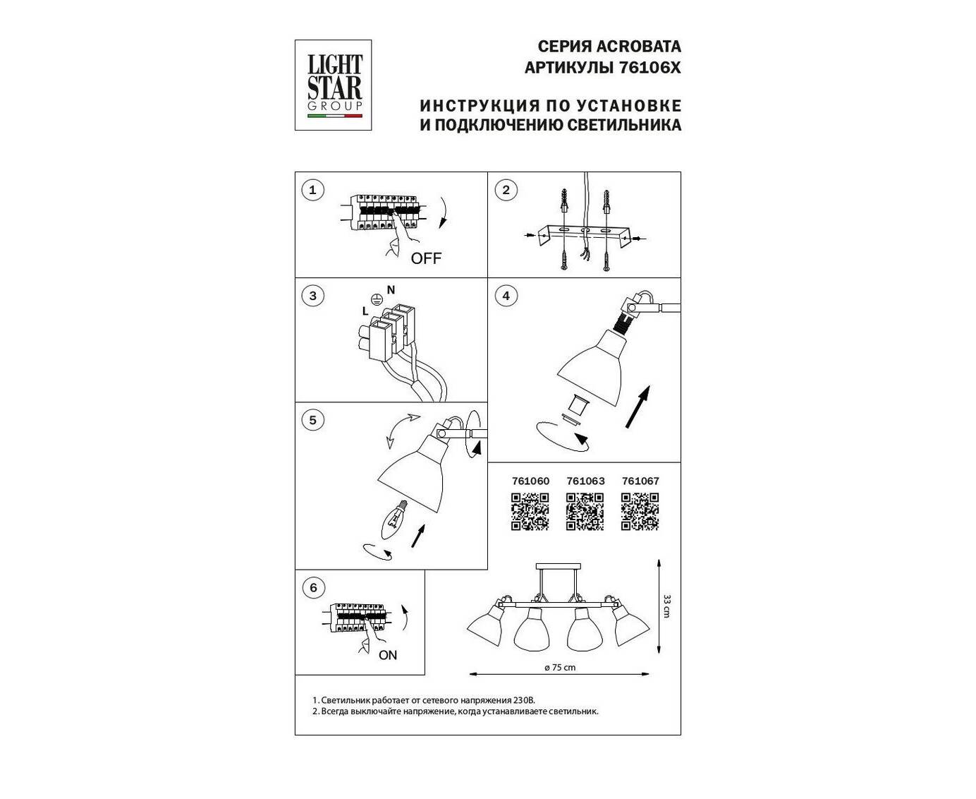 Модель 761067 от компании Lightstar прекрасно впишется в Ваш интерьер. Вы можете приобрести Потолочная люстра Lightstar Acrobata 761067 по самой низкой цене в магазине Гиперсвет.