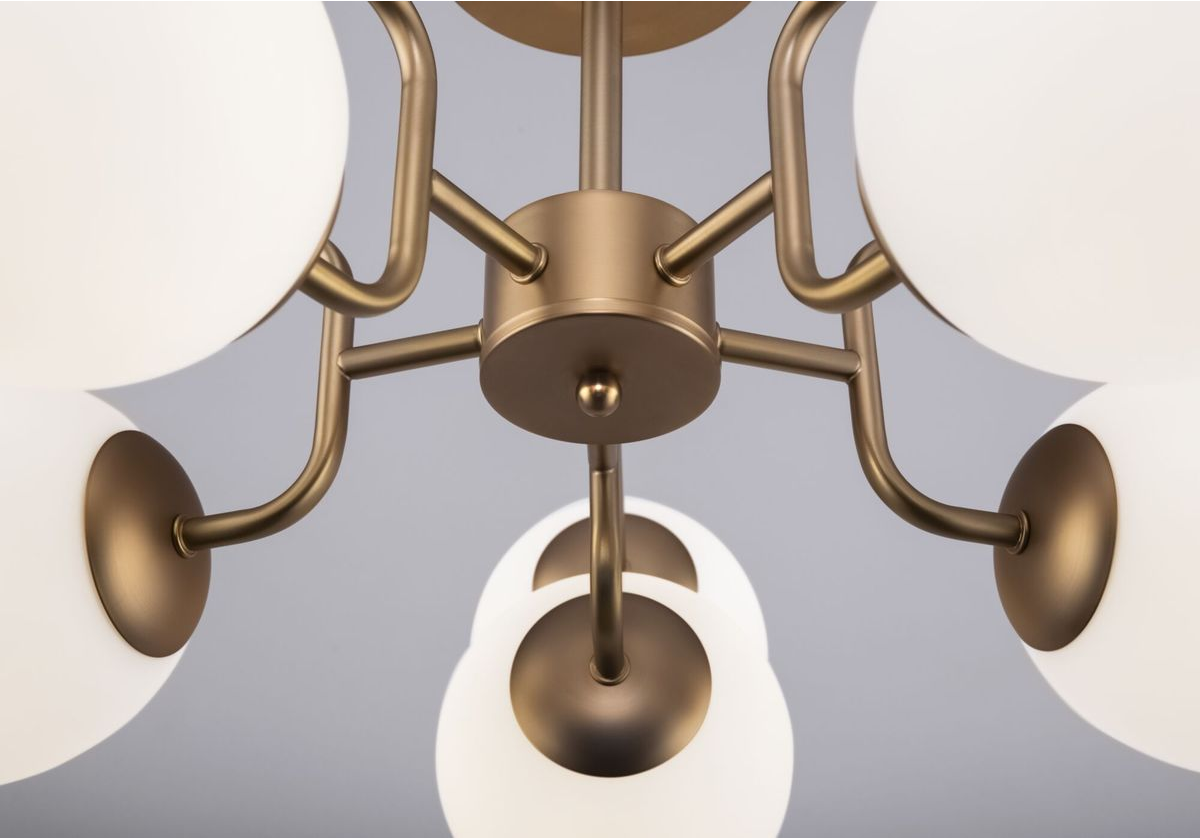 Потолочная люстра на штанге MOD221PL-10G Erich от немецкого производителя светильников Maytoni отлично подойдет для гостиной в современном дизайне. Каркас из металла золотого цвета, 10 ламп с цоколем E14 и белые стеклянные плафоны придают данной модели потрясающий внешний вид. Производитель рекомендует использовать в данной модели лампы накаливания или эквивалентные по световому потоку светодиодные лампы (в комплект не входят). Модель MOD221PL-10G Erich можно устанавливать на натяжной потолок с использованием стандартной монтажной планки. *При установке на натяжной потолок допускается использовать только светодиодные LED лампы. Родиной бренда Maytoni является ГЕРМАНИЯ. Сборочное производство компании расположено в Китае, однако, это никак не сказывается на качестве продукции. Заявленный производителем Maytoni гарантийный срок составляет 2 года. Потолочная люстра Maytoni Erich MOD221PL-10G будет отличным выбором для покупки в интернет-магазине ГиперСвет. Мы оперативно доставим Ваш заказ по Калуге, Москве или в любой другой регион России.