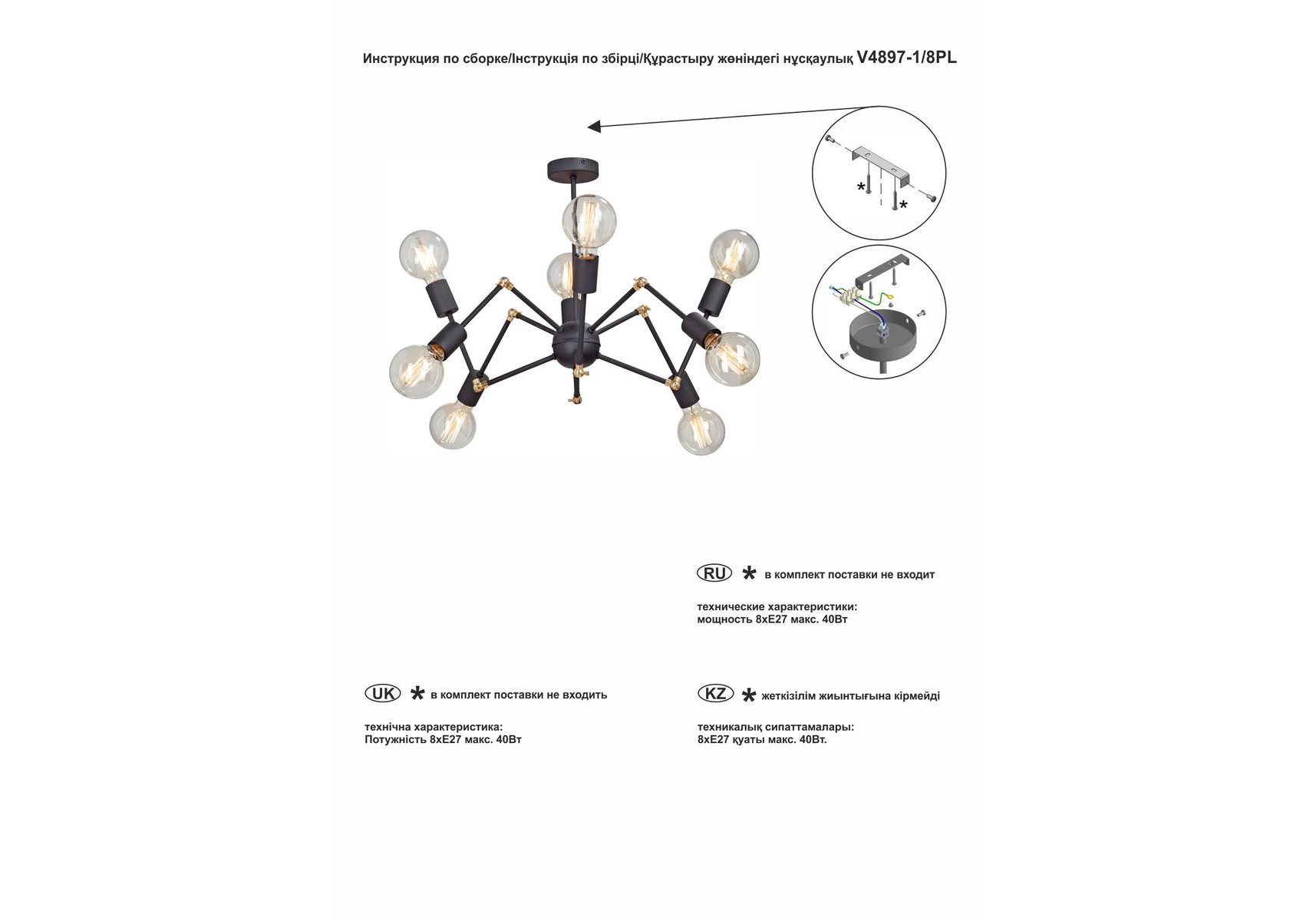 Потолочная люстра Vitaluce V4897-1/8PL