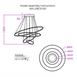 Тип цоколяE14 Мощность, Вт480 Степень защитыIP20 Высота, мм365 Диаметр, мм960 Длина подвеса, мм255