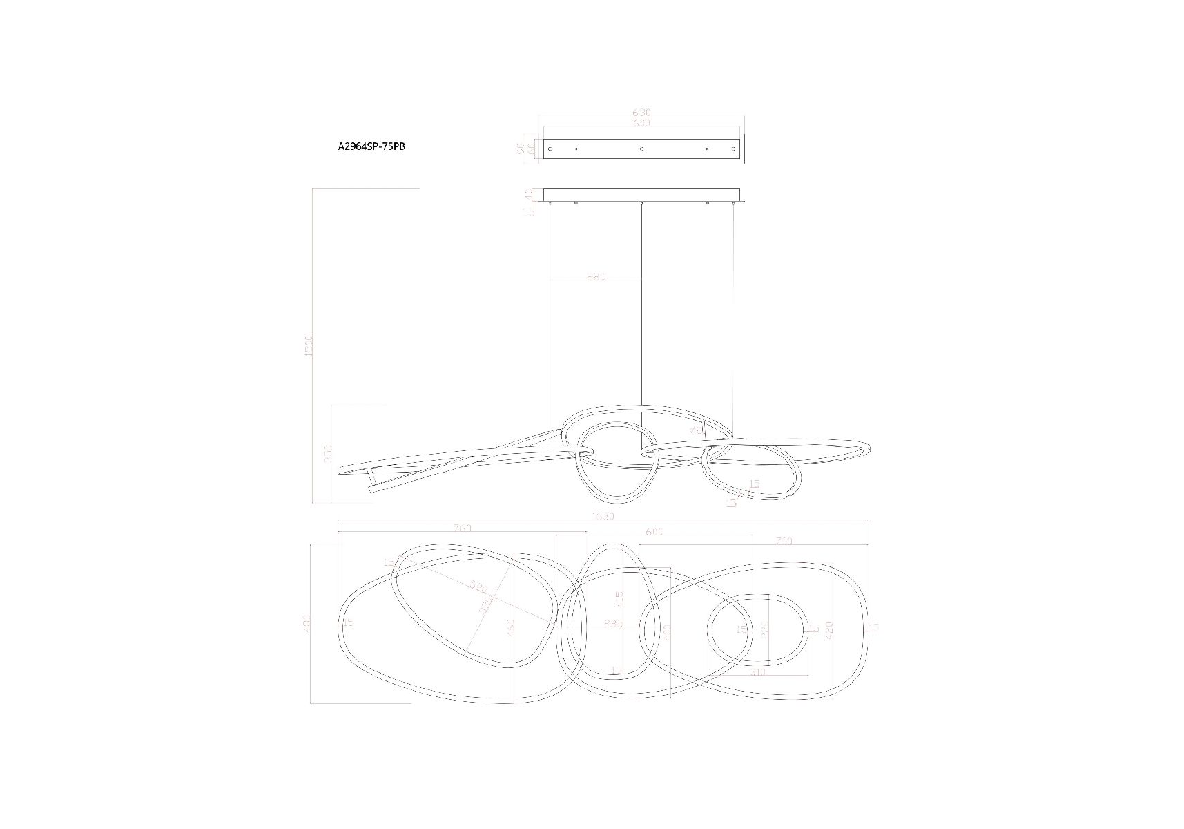 Длина подвеса, мм: