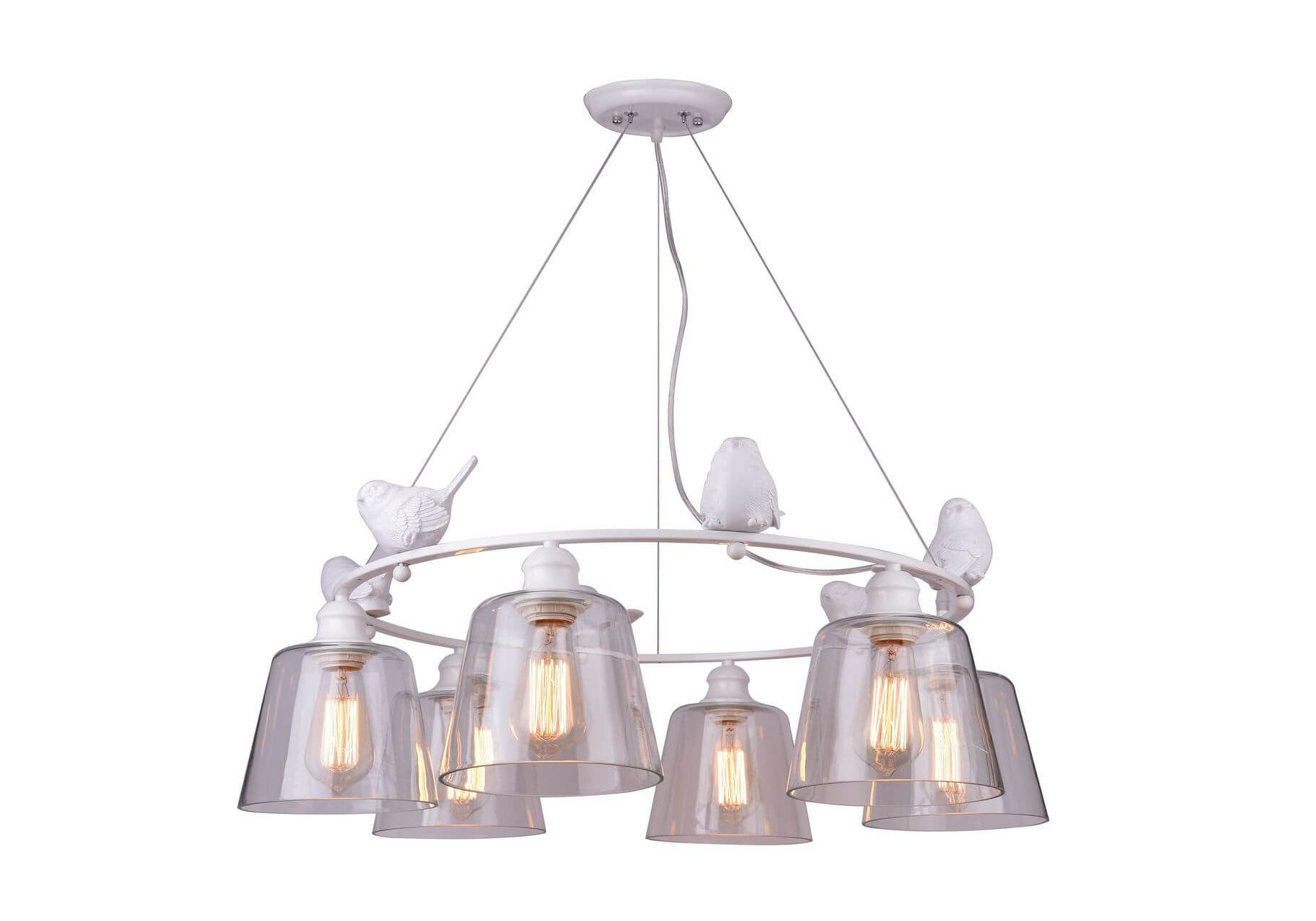 Подвесная люстра A4289LM-6WH от итальянской фирмы Arte Lamp великолепно украсит интерьер спальни в стиле прованс. Каркас из металла белого цвета, 6 ламп с цоколем E27 и прозрачные стеклянные плафоны придают данной модели уникальный внешний вид. Люстра осветит комнату площадью до 13.3 м2, при использовании рекомендуемых производителем или эквивалентных по световому потоку LED ламп (в комплект не входят). Модель A4289LM-6WH можно устанавливать на натяжной потолок. *При установке на натяжной потолок допускается использовать только светодиодные LED лампы. Родиной бренда Arte Lamp является ИТАЛИЯ. Сборочное производство компании расположено в Китае, однако, это никак не сказывается на качестве продукции. Заявленный производителем Arte Lamp гарантийный срок составляет 12 месяцев. Подвесная люстра Arte Lamp Passero A4289LM-6WH будет отличным выбором для покупки в интернет-магазине ГиперСвет. Мы оперативно доставим Ваш заказ по Калуге, Москве или в любой другой регион России.