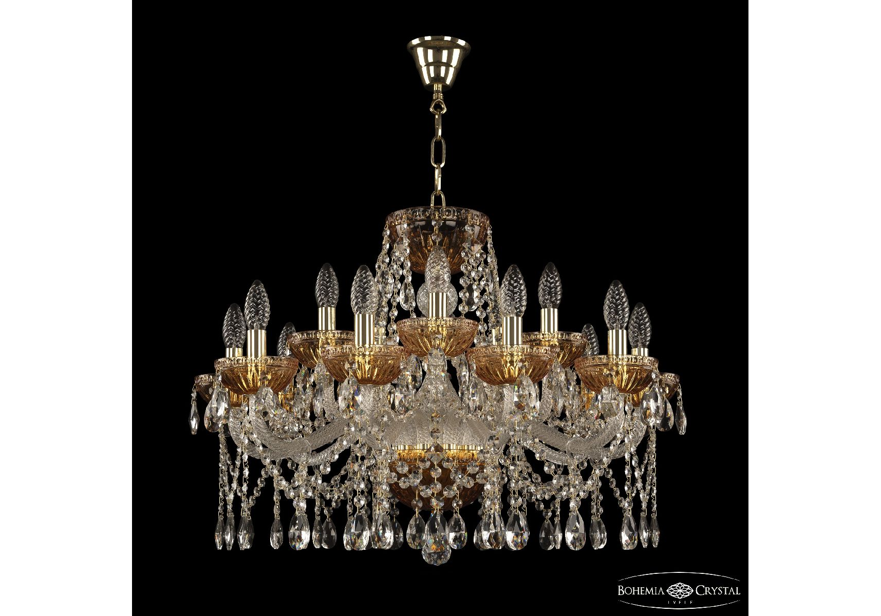Подвесная люстра Bohemia Ivele Crystal 5413/10+5/240 G Amber/M-1G