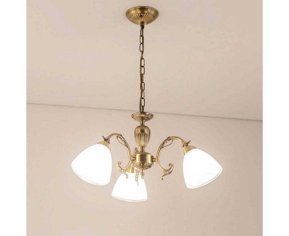 Подвесная люстра CL413231 Латур от известного бренда из Дании Citilux обладает потрясающим внешним видом и великолепно подойдет для спальни в классическом стиле. Каркас из металла бронзового цвета, 3 лампы с цоколем E27 и белые стеклянные плафоны придают данной модели потрясающий внешний вид. Люстра осветит комнату площадью до 10 м2, при использовании рекомендуемых производителем или эквивалентных по световому потоку LED ламп (в комплект не входят). Модель CL413231 Латур можно устанавливать на натяжной потолок. *При установке на натяжной потолок допускается использовать только светодиодные LED лампы. Родиной бренда Citilux является ДАНИЯ. Сборочное производство компании расположено в Китае, однако, это никак не сказывается на качестве продукции. Заявленный производителем Citilux гарантийный срок составляет 12 месяцев. Подвесная люстра Citilux Латур CL413231 будет отличным выбором для покупки в интернет-магазине ГиперСвет. Мы оперативно доставим Ваш заказ по Калуге, Москве или в любой другой регион России.