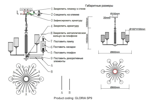 Расположение плафонов: