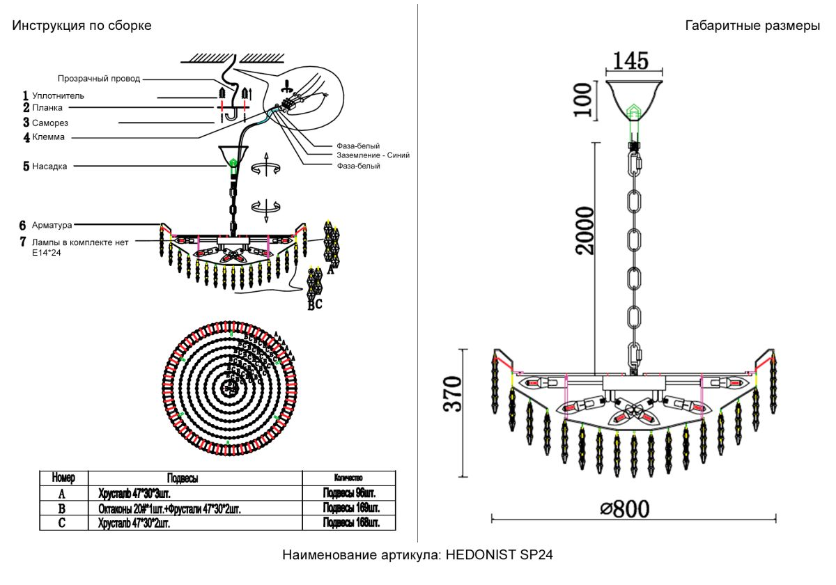 Подвесная люстра Crystal Lux HEDONIST SP24