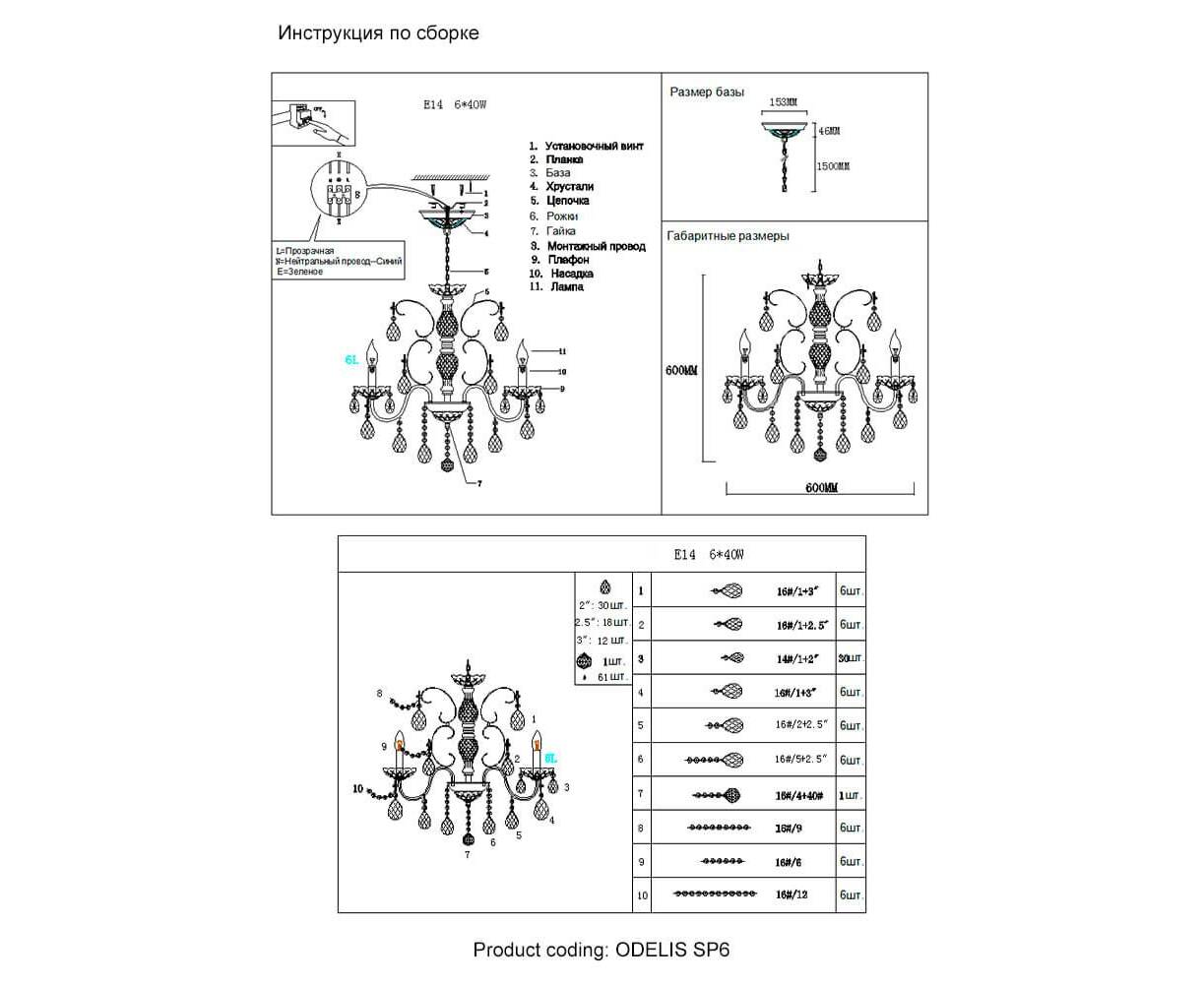 Подвесная люстра Crystal Lux Odelis SP6 Brown