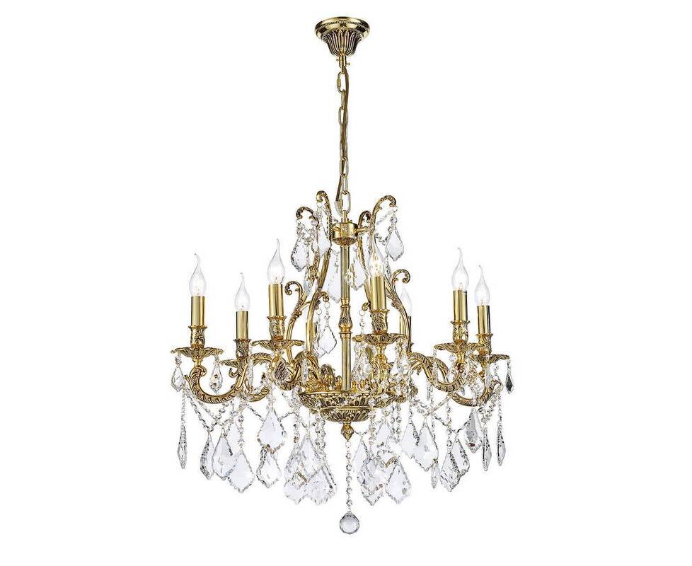 Неповторимая подвесная люстра Barolo E 1.1.8.600 CG Barolo Gold от итальянской фирмы Dio D`arte станет изящным центром интерьера гостиной в классическом стиле. Каркас из металла золотого цвета, 8 ламп с цоколем E14 и качественный хрусталь придают данной модели неповторимый внешний вид. Люстра осветит комнату площадью до 16 м2, при использовании рекомендуемых производителем или эквивалентных по световому потоку LED ламп (в комплект не входят). Модель Barolo E 1.1.8.600 CG Barolo Gold можно устанавливать на натяжной потолок. *При установке на натяжной потолок допускается использовать только светодиодные LED лампы. Родиной бренда Dio D`arte является ИТАЛИЯ. Заявленный производителем Dio D`arte гарантийный срок составляет 12 месяцев. Подвесная люстра Dio DArte Elite Barolo E 1.1.8.600 CG будет отличным выбором для покупки в интернет-магазине ГиперСвет. Мы оперативно доставим Ваш заказ по Калуге, Москве или в любой другой регион России.