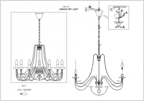 Подвесная люстра 2164-7P Chateau от немецкого производителя светильников F-Promo отлично подойдет для гостиной в стиле средневекового замка. Каркас из металла белого цвета, 7 ламп с цоколем E14 без плафонов придают данной модели потрясающий внешний вид. Производитель рекомендует использовать в данной модели лампы накаливания или эквивалентные по световому потоку светодиодные лампы (в комплект не входят). Модель 2164-7P Chateau можно устанавливать на натяжной потолок. *При установке на натяжной потолок допускается использовать только светодиодные LED лампы. Родиной бренда F-Promo является ГЕРМАНИЯ. Заявленный производителем F-Promo гарантийный срок составляет 3 года. Подвесная люстра F-Promo Chateau 2164-7P будет отличным выбором для покупки в интернет-магазине ГиперСвет. Мы оперативно доставим Ваш заказ по Калуге, Москве или в любой другой регион России.