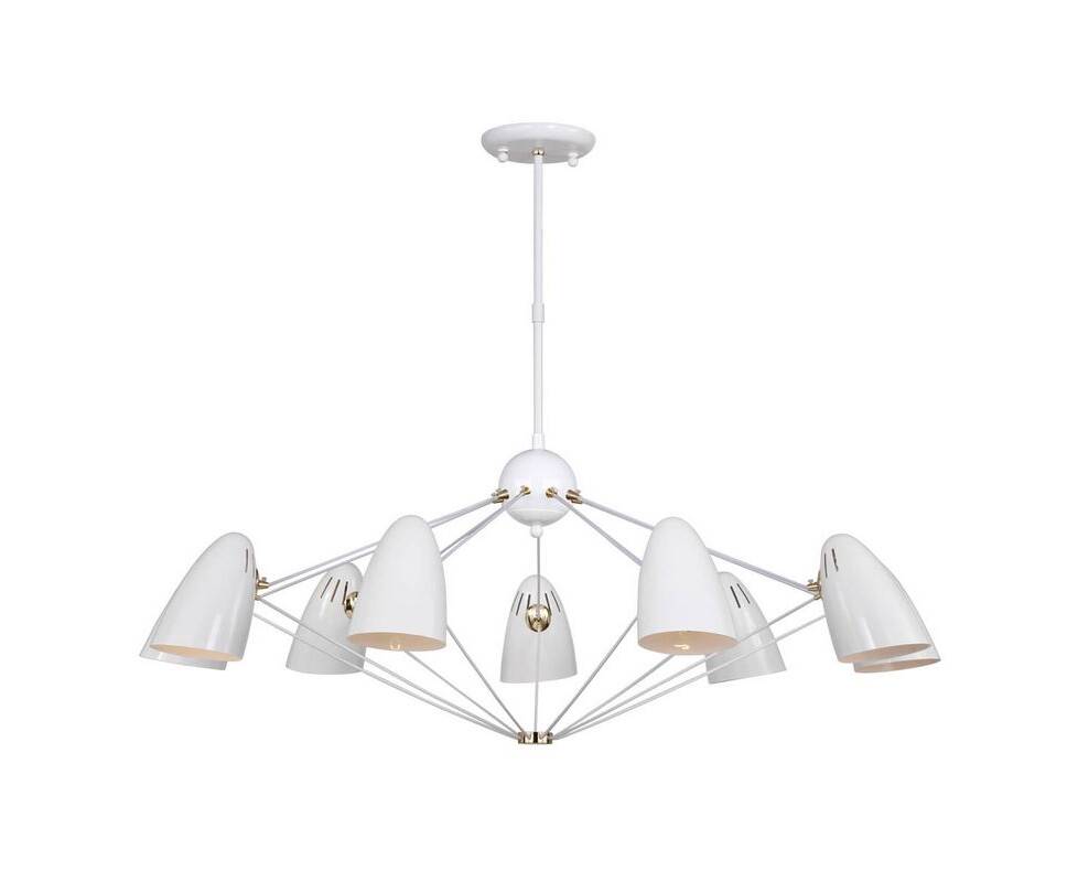 Подвесная люстра 1758-9P Humpen White от немецкого производителя светильников Favourite сделает уникальным и неповторимым интерьер магазина в скандинавском стиле. Каркас из металла золотого цвета, 9 ламп с цоколем E14 и белые металличекие плафоны придают данной модели уникальный внешний вид. Люстра осветит комнату площадью до 20 м2, при использовании рекомендуемых производителем или эквивалентных по световому потоку LED ламп (в комплект не входят). Модель 1758-9P Humpen White можно устанавливать на натяжной потолок. *При установке на натяжной потолок допускается использовать только светодиодные LED лампы. Родиной бренда Favourite является ГЕРМАНИЯ. Заявленный производителем Favourite гарантийный срок составляет 3 года. Подвесная люстра Favourite Humpen 1758-9P будет отличным выбором для покупки в интернет-магазине ГиперСвет. Мы оперативно доставим Ваш заказ по Калуге, Москве или в любой другой регион России.