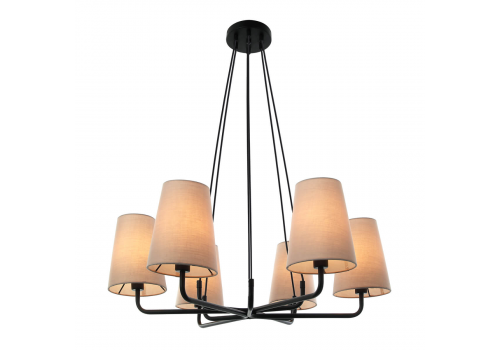 Подвесная люстра 2364-6P Pfefferling от немецкого производителя светильников Favourite отлично подойдет, например, для спальни в современном стиле. Каркас из металла черного цвета, 6 ламп с цоколем E14 и бежевые тканевые абажуры придают данной модели великолепный внешний вид. Производитель рекомендует использовать в данной модели лампы накаливания или эквивалентные по световому потоку светодиодные лампы (в комплект не входят). Модель 2364-6P Pfefferling можно устанавливать на натяжной потолок. *При установке на натяжной потолок допускается использовать только светодиодные LED лампы. Родиной бренда Favourite является ГЕРМАНИЯ. Заявленный производителем Favourite гарантийный срок составляет 3 года. Подвесная люстра Favourite Pfefferling 2364-6P будет отличным выбором для покупки в интернет-магазине ГиперСвет. Мы оперативно доставим Ваш заказ по Калуге, Москве или в любой другой регион России.