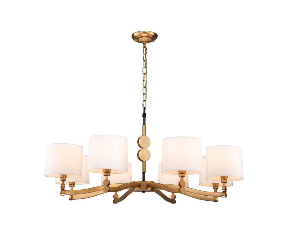 Подвесная люстра 2624-8P Roshe от немецкого производителя светильников Favourite отличается превосходным дизайном и особенно хорошо подойдет для гостиной в стиле кантри. Каркас из металла цвета латуни, 8 ламп с цоколем E14 и белые тканевые абажуры придают данной модели потрясающий внешний вид. Люстра осветит комнату площадью до 16 м2, при использовании рекомендуемых производителем или эквивалентных по световому потоку LED ламп (в комплект не входят). Модель 2624-8P Roshe можно устанавливать на натяжной потолок с использованием стандартной монтажной планки. *При установке на натяжной потолок допускается использовать только светодиодные LED лампы. Родиной бренда Favourite является ГЕРМАНИЯ. Заявленный производителем Favourite гарантийный срок составляет 3 года. Подвесная люстра Favourite Roshe 2624-8P будет отличным выбором для покупки в интернет-магазине ГиперСвет. Мы оперативно доставим Ваш заказ по Калуге, Москве или в любой другой регион России.