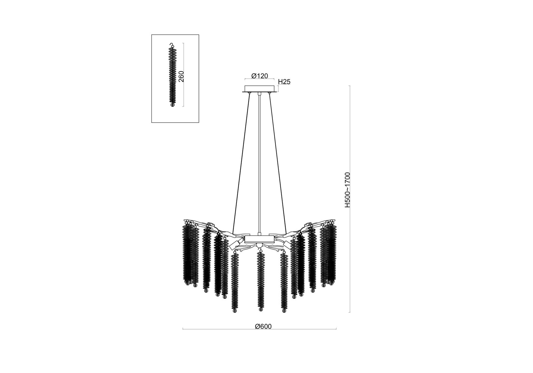 Длина подвеса, мм: