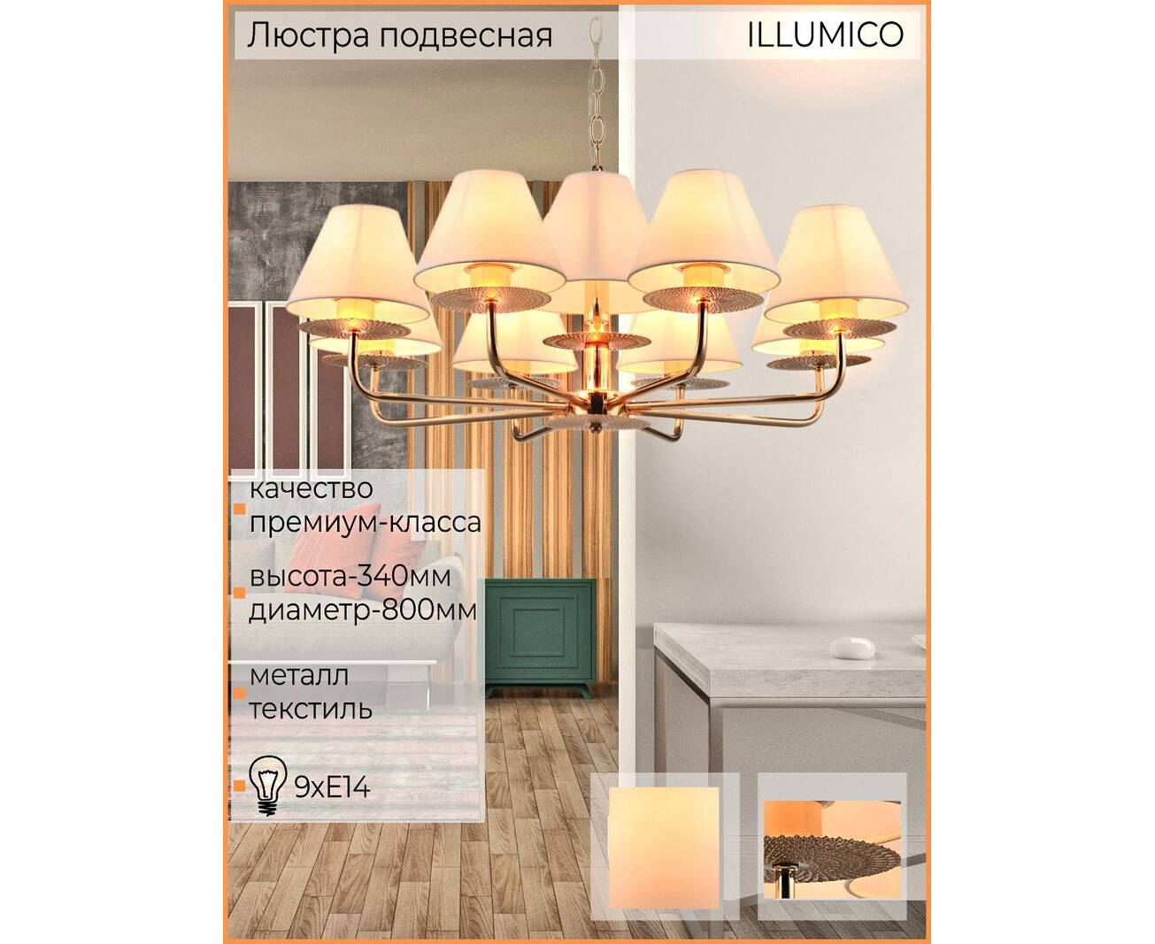 Подвесная люстра Illumico IL6197-9P-17 GD