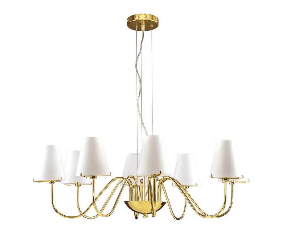 Подвесная люстра 758082 Diafano от итальянской фирмы Lightstar великолепно украсит интерьер гостиной в современном дизайне. Каркас из металла золотого цвета, 8 ламп с цоколем G9 и белые тканевые абажуры придают данной модели уникальный внешний вид. Люстра осветит комнату площадью до 17.8 м2, при использовании рекомендуемых производителем галогеновых или эквивалентных по световому потоку LED ламп (в комплект не входят). Модель 758082 Diafano можно устанавливать на натяжной потолок. *При установке на натяжной потолок допускается использовать только светодиодные LED лампы. Родиной бренда Lightstar является ИТАЛИЯ. Сборочное производство компании расположено в Китае, однако, это никак не сказывается на качестве продукции. Заявленный производителем Lightstar гарантийный срок составляет 12 месяцев. Подвесная люстра Lightstar Diafano 758082 будет отличным выбором для покупки в интернет-магазине ГиперСвет. Мы оперативно доставим Ваш заказ по Калуге, Москве или в любой другой регион России.