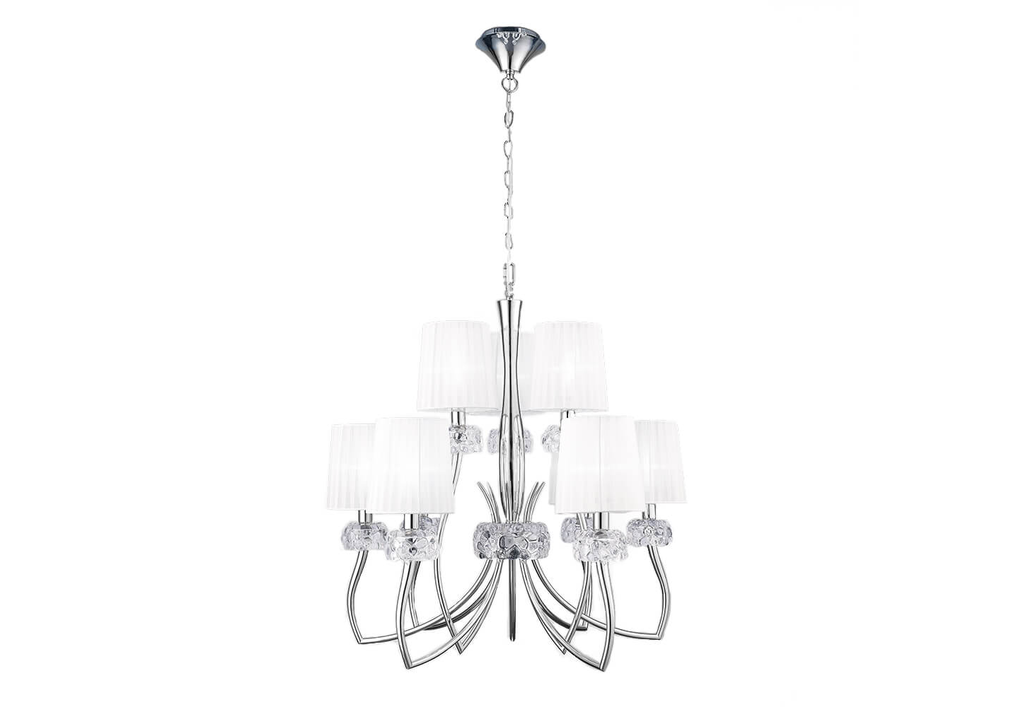 Дизайнерская подвесная люстра 4630 Loewe от испанского производителя светильников Mantra будет отличным выбором для гостиной в современном дизайне. Каркас из металла с хромированным покрытием, 9 ламп с цоколем E14 и белые тканевые абажуры придают данной модели дизайнерский внешний вид. Производитель рекомендует использовать в данной модели светодиодные LED лампы (в комплект не входят). Модель 4630 Loewe можно устанавливать на натяжной потолок. *При установке на натяжной потолок допускается использовать только светодиодные LED лампы. Родиной бренда Mantra является ИСПАНИЯ. Заявленный производителем Mantra гарантийный срок составляет 5 лет. Подвесная люстра Mantra Loewe 4630 будет отличным выбором для покупки в интернет-магазине ГиперСвет. Мы оперативно доставим Ваш заказ по Калуге, Москве или в любой другой регион России.