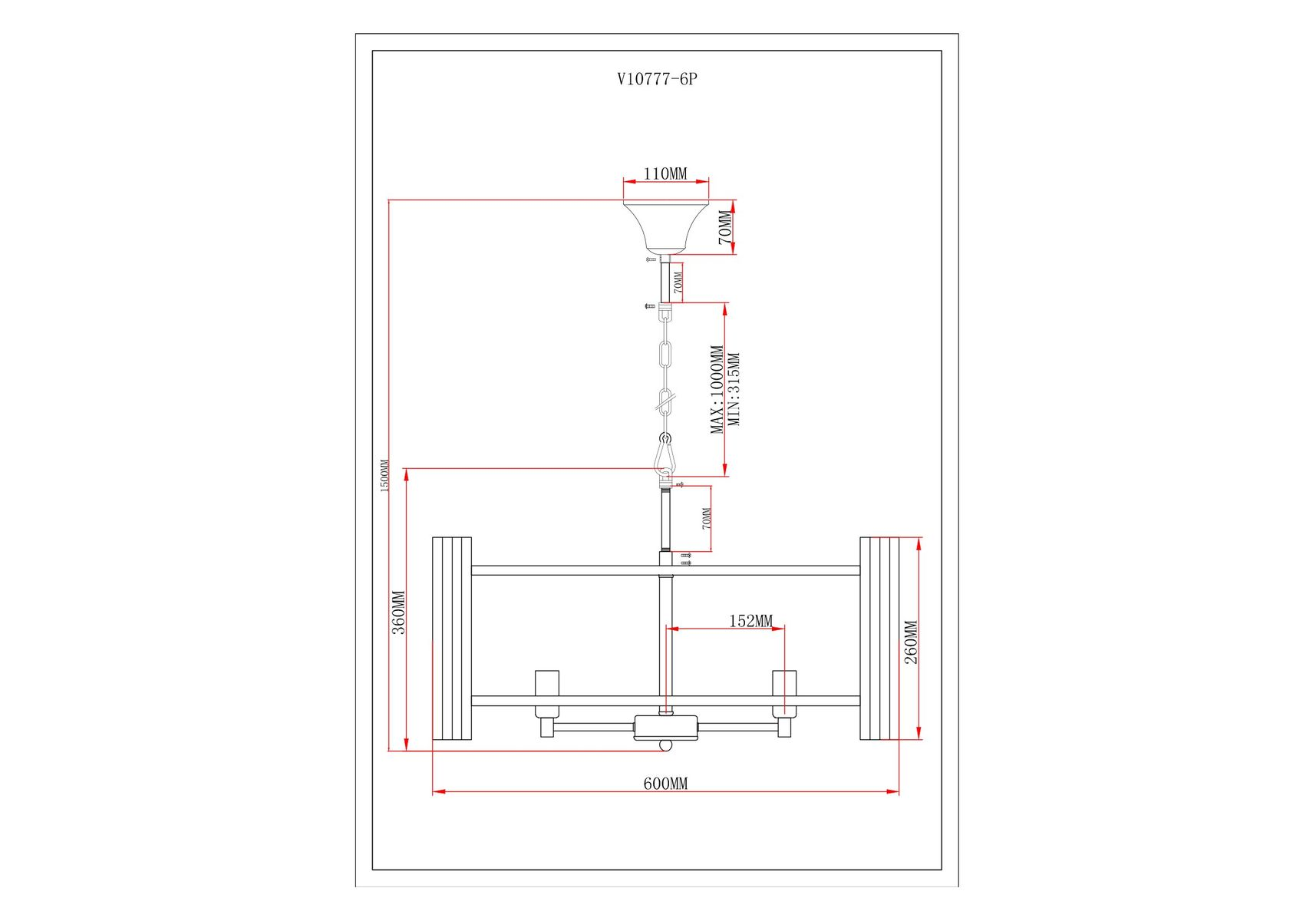 Длина подвеса, мм: