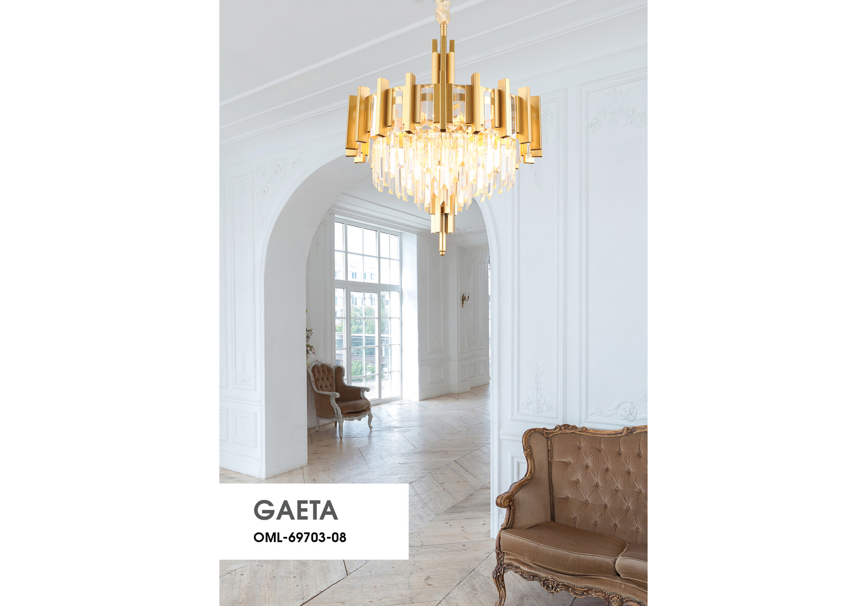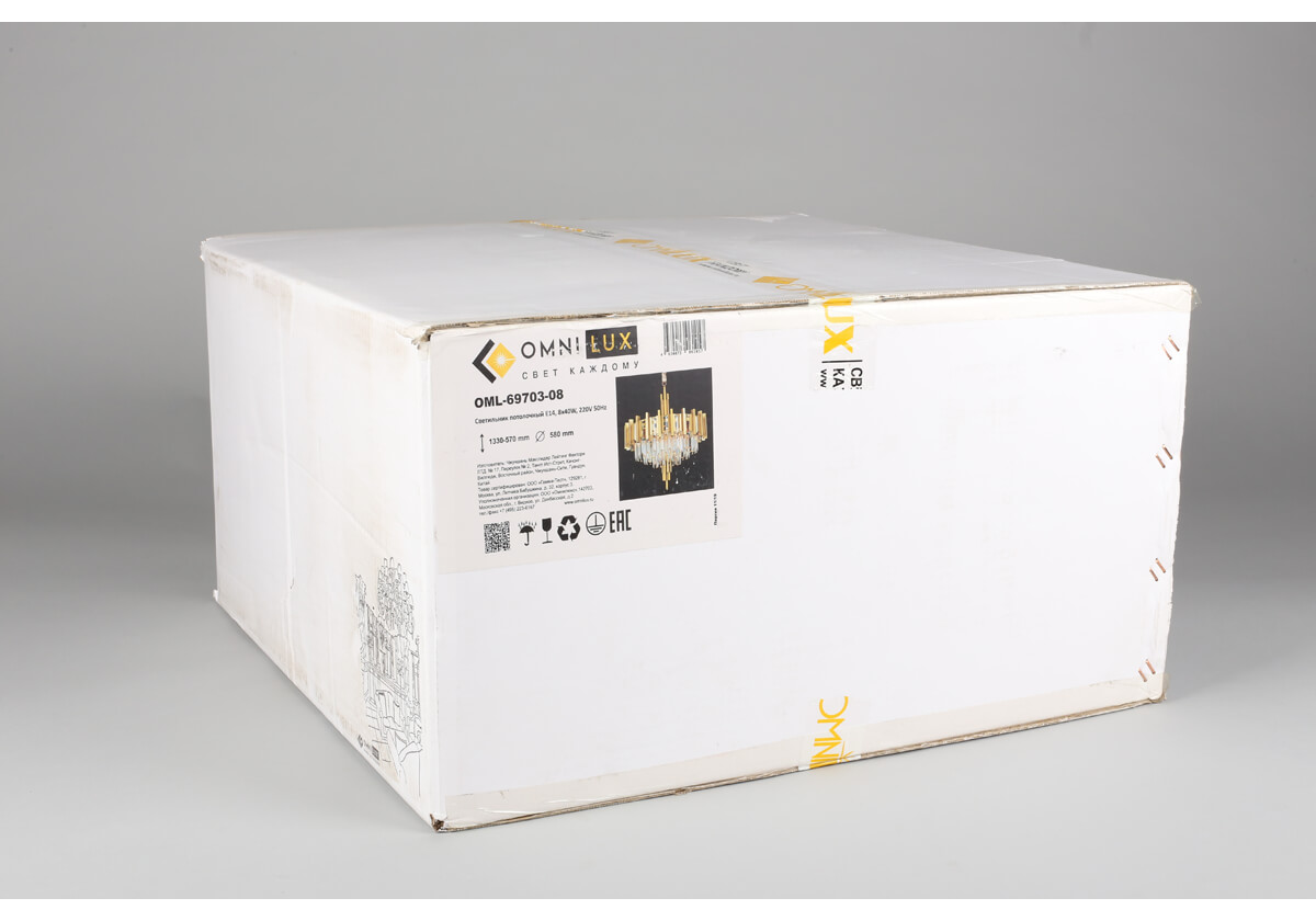 Подвесная люстра OML-69703-08 Gaeta от итальянской фирмы Omnilux поможет великолепно дополнить интерьер гостиной в стиле модерн. Каркас из металла золотого цвета, 8 ламп с цоколем E14 и прозрачные хрустальные плафоны придают данной модели необыкновенный внешний вид. Люстра осветит комнату площадью до 16 м2, при использовании рекомендуемых производителем или эквивалентных по световому потоку LED ламп (в комплект не входят). Модель OML-69703-08 Gaeta можно устанавливать на натяжной потолок при помощи крюка. *При установке на натяжной потолок допускается использовать только светодиодные LED лампы. Родиной бренда Omnilux является ИТАЛИЯ. Заявленный производителем Omnilux гарантийный срок составляет 2 года. Подвесная люстра Omnilux Gaeta OML-69703-08 будет отличным выбором для покупки в интернет-магазине ГиперСвет. Мы оперативно доставим Ваш заказ по Калуге, Москве или в любой другой регион России.