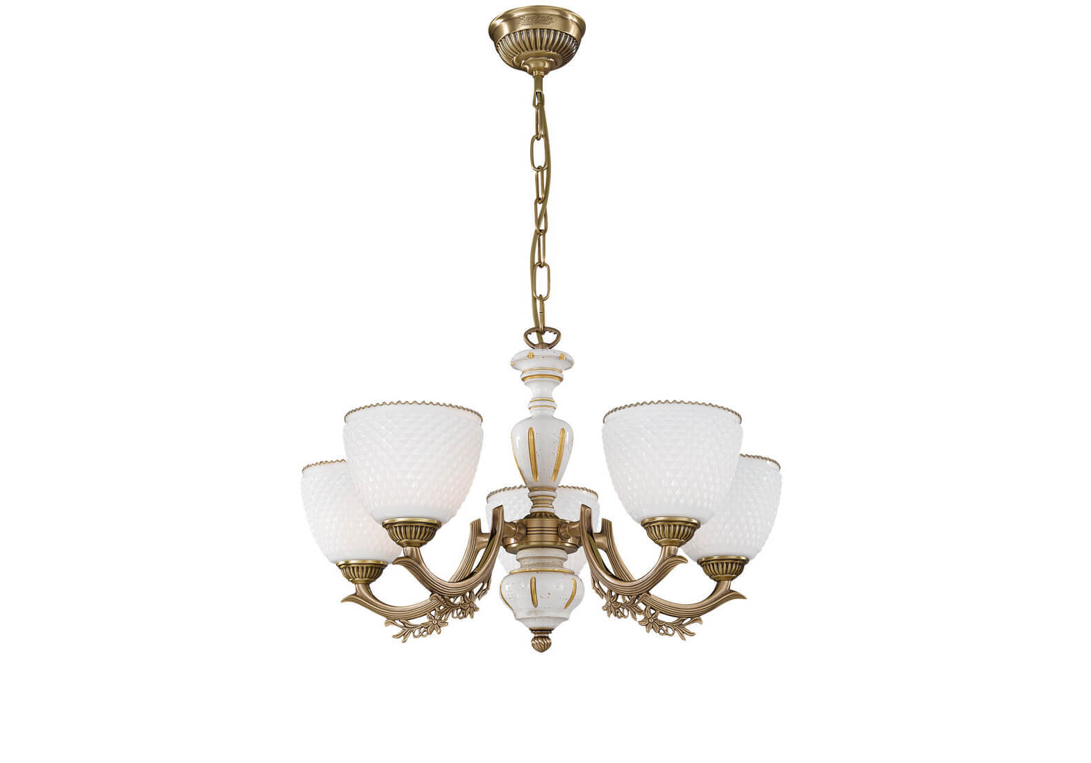 Потрясающая подвесная люстра L 8656/5 rosa 8656 от итальянской фирмы Reccagni Angelo отлично подойдет для гостиной в классическом стиле. Каркас из латуни цвета античной бронзы, 5 ламп с цоколем E27 и белые стеклянные плафоны придают данной модели потрясающий внешний вид. Люстра осветит комнату площадью до 15 м2, при использовании рекомендуемых производителем или эквивалентных по световому потоку LED ламп (в комплект не входят). Модель L 8656/5 rosa 8656 можно устанавливать на натяжной потолок. *При установке на натяжной потолок допускается использовать только светодиодные LED лампы. Родиной бренда Reccagni Angelo является ИТАЛИЯ. Заявленный производителем Reccagni Angelo гарантийный срок составляет 6 месяцев. Подвесная люстра Reccagni Angelo L 8656/5 будет отличным выбором для покупки в интернет-магазине ГиперСвет. Мы оперативно доставим Ваш заказ по Калуге, Москве или в любой другой регион России.