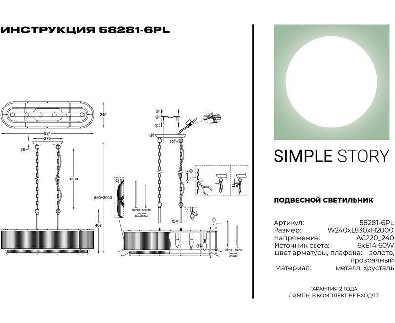 Подвесная люстра Simple Story 58281-6PL