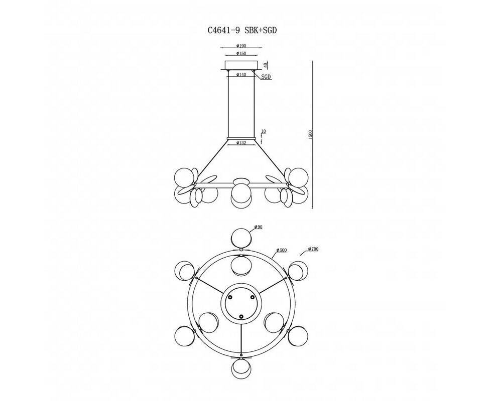 Подвесная светодиодная люстра iLedex Savage C4641-9 MBK+SGD