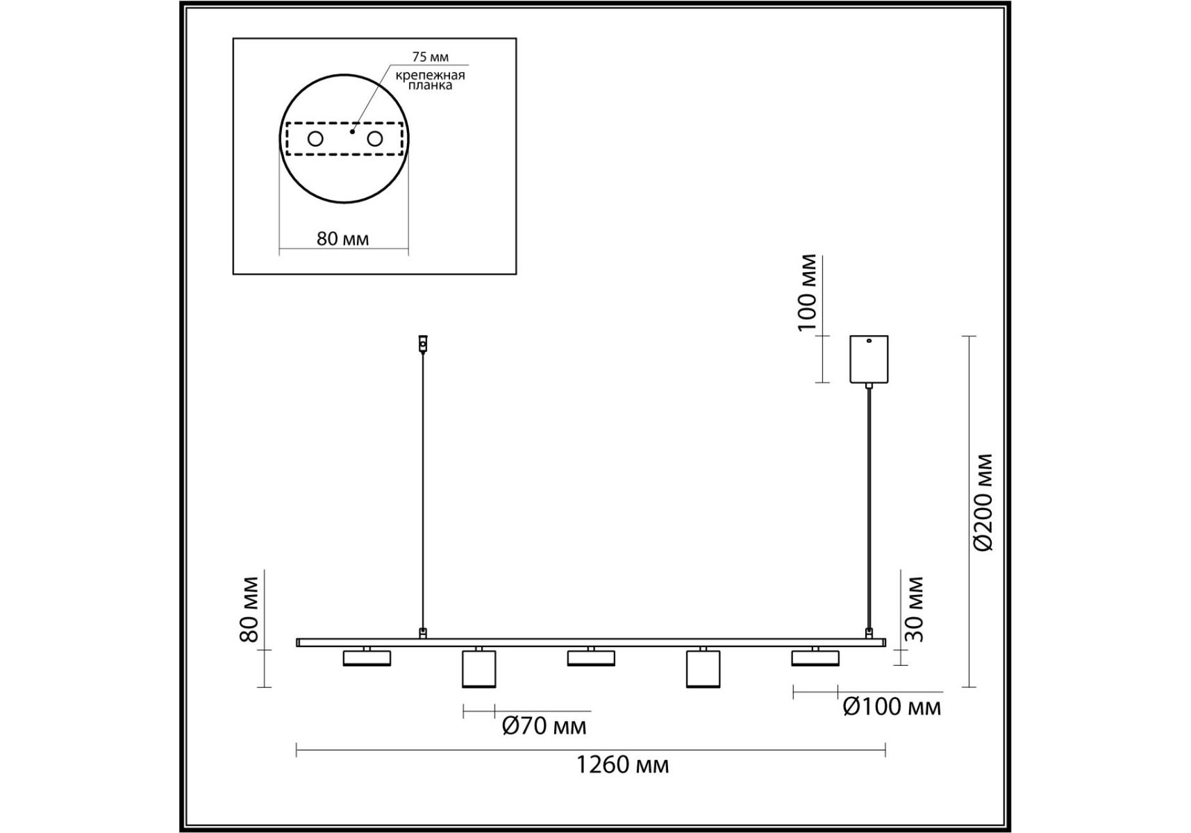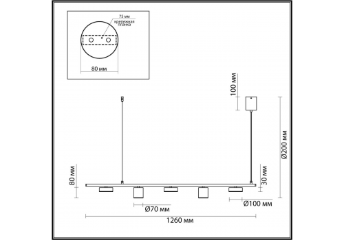 Длина подвеса, мм: