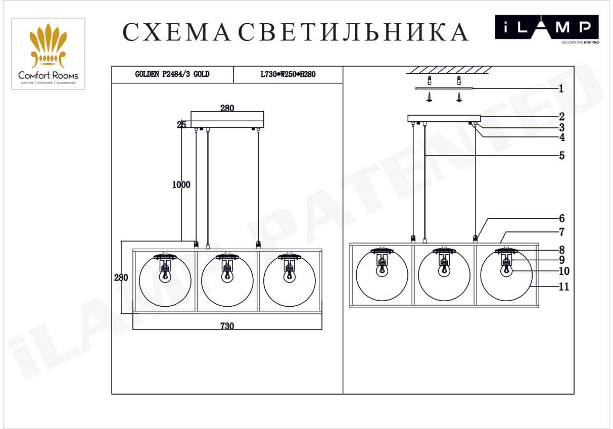 Подвесной светильник iLamp Golden P2484-3 GOLD