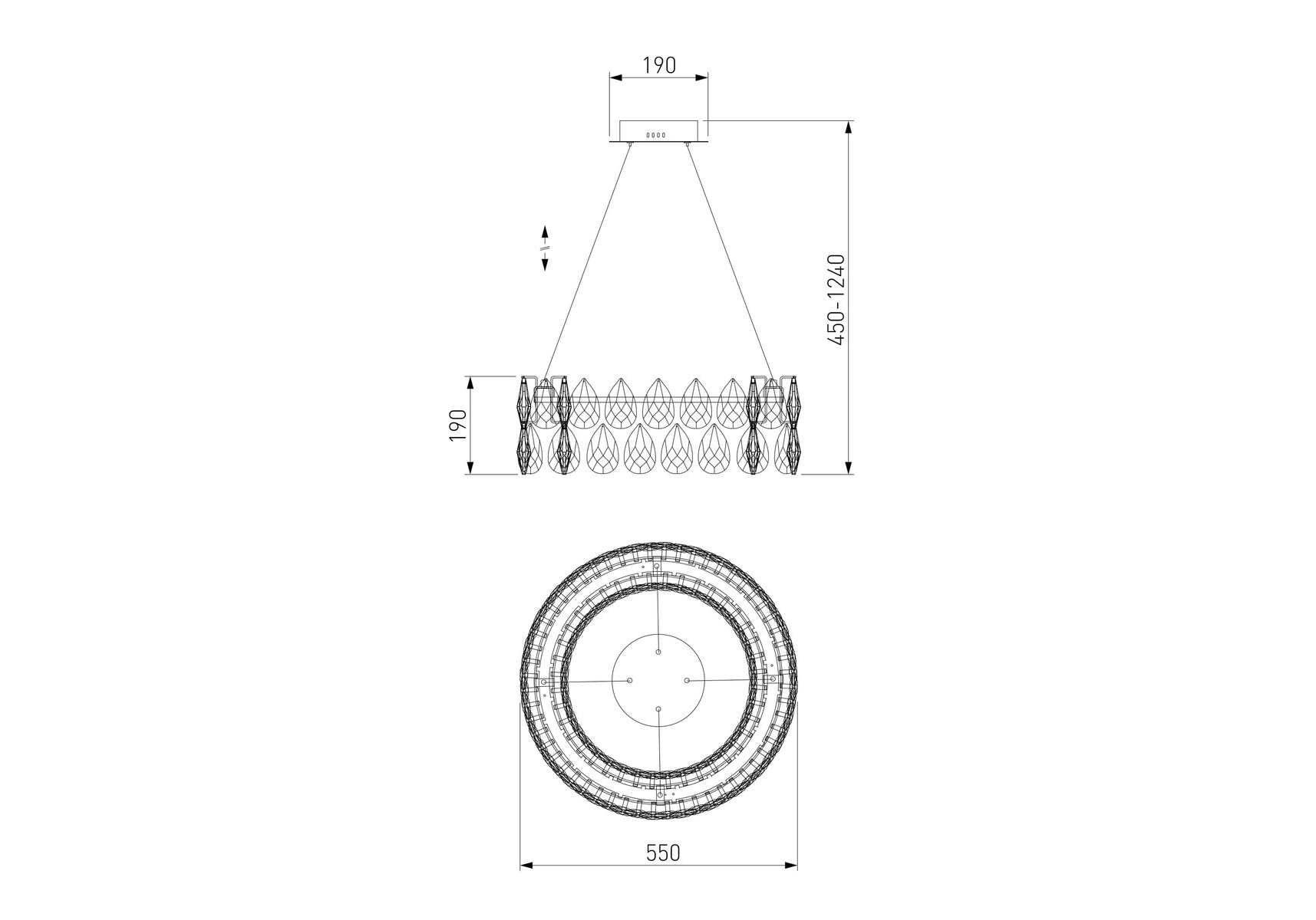 Длина подвеса, мм: