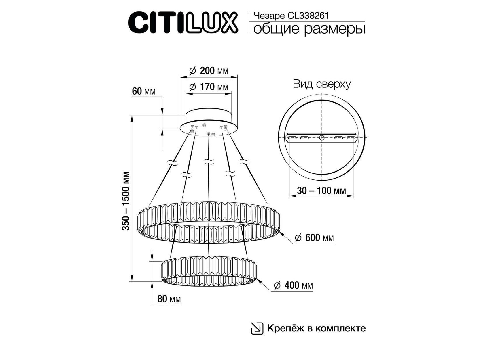 Длина подвеса, мм:
