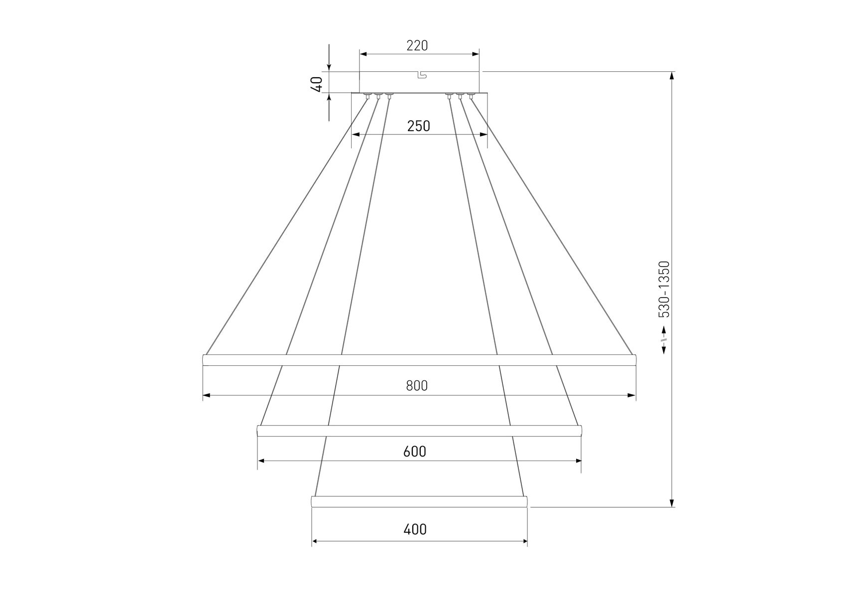 Длина подвеса, мм: