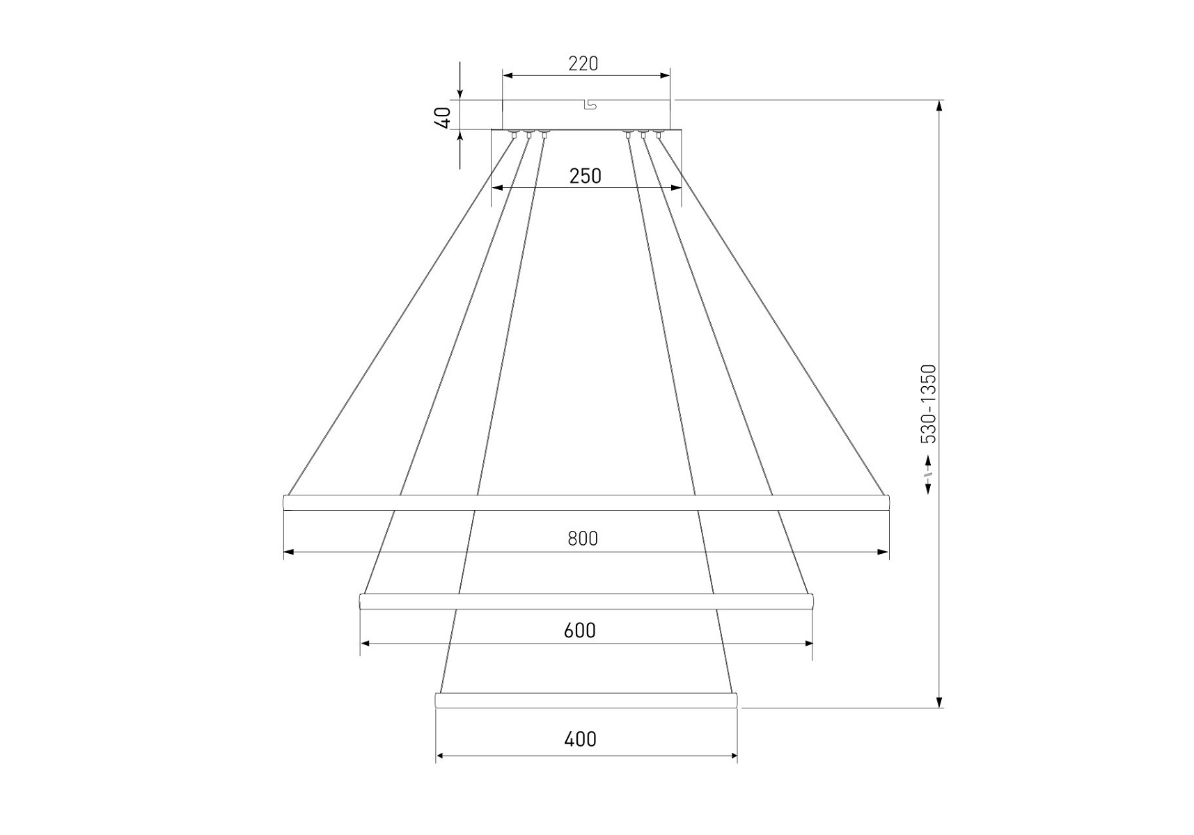 Длина подвеса, мм: