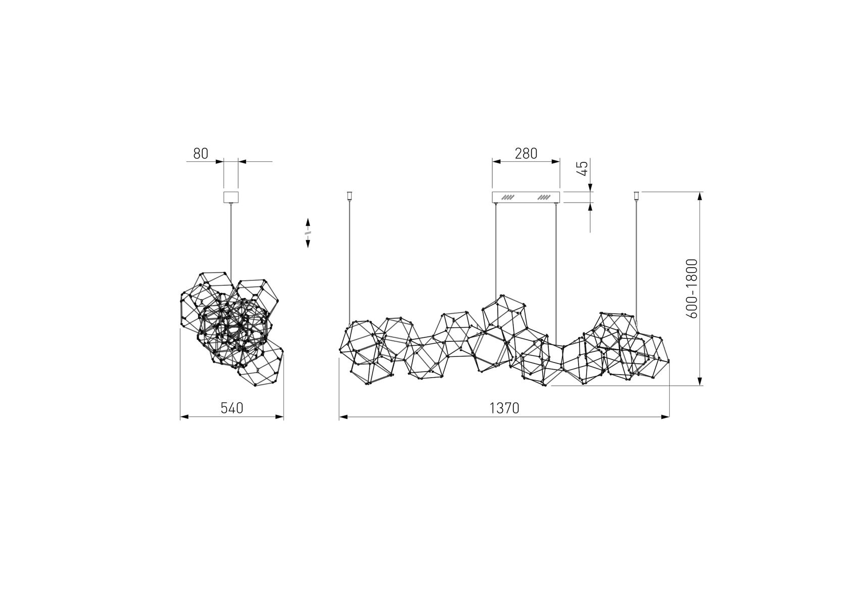 Длина подвеса, мм: