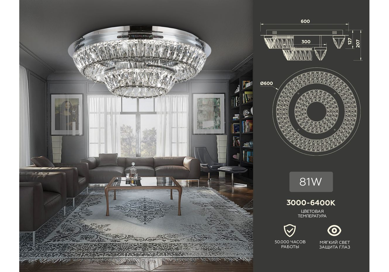 Подходит для низких потолков: