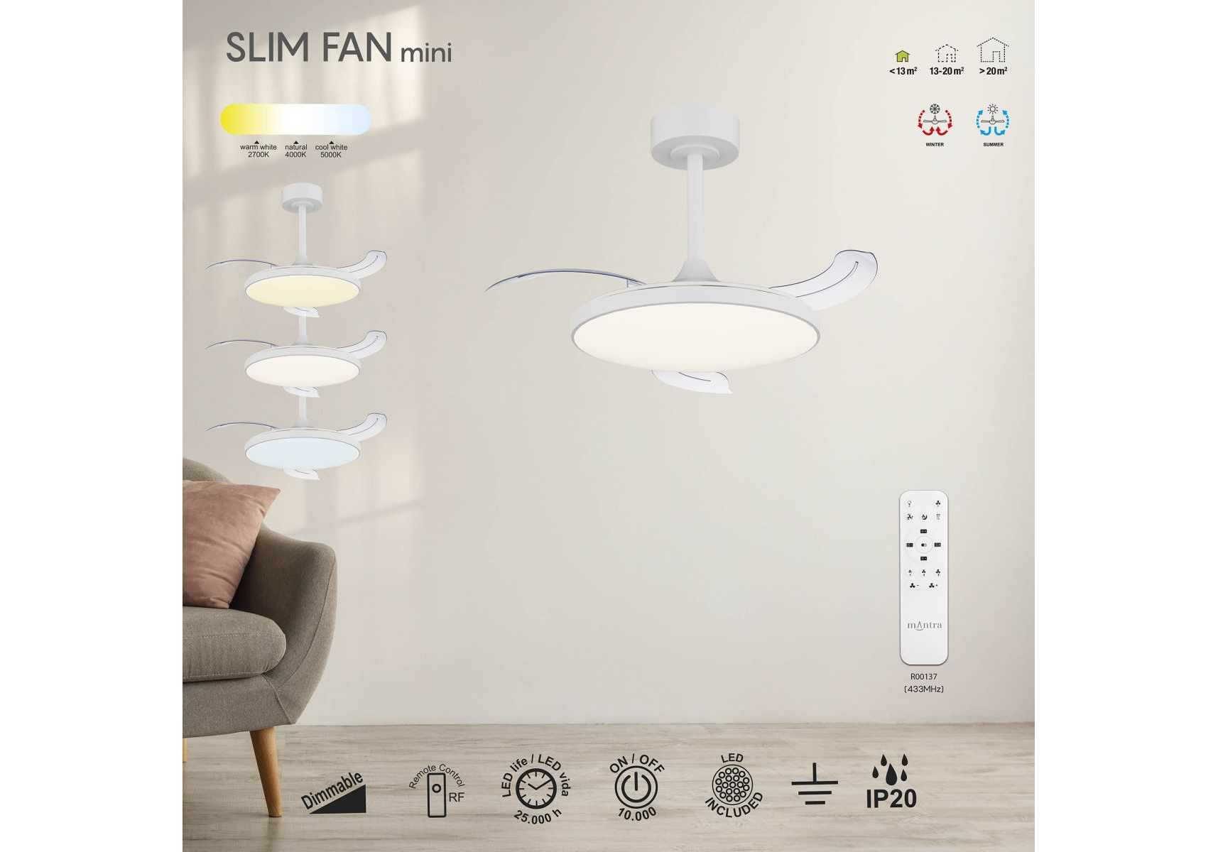 Люстра-вентилятор Mantra Slim Fan 9008