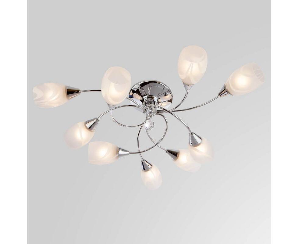 Потолочная люстра 2275/9 хром 2275 Хром от российской компании Eurosvet будет великолепно смотреться в интерьере гостиной в современном стиле. Каркас из металла с хромированным покрытием, 9 ламп с цоколем E27 и белые стеклянные плафоны придают данной модели уникальный внешний вид. Люстра осветит комнату площадью до 43 м2, при использовании рекомендуемых производителем или эквивалентных по световому потоку LED ламп (в комплект не входят). Модель 2275/9 хром 2275 Хром можно устанавливать на натяжной потолок. *При установке на натяжной потолок допускается использовать только светодиодные LED лампы. Родиной бренда Eurosvet является РОССИЯ. Сборочное производство компании расположено в Китае, однако, это никак не сказывается на качестве продукции. Заявленный производителем Eurosvet гарантийный срок составляет 12 месяцев. Подвесная люстра Eurosvet 2275/9 хром будет отличным выбором для покупки в интернет-магазине ГиперСвет. Мы оперативно доставим Ваш заказ по Калуге, Москве или в любой другой регион России.