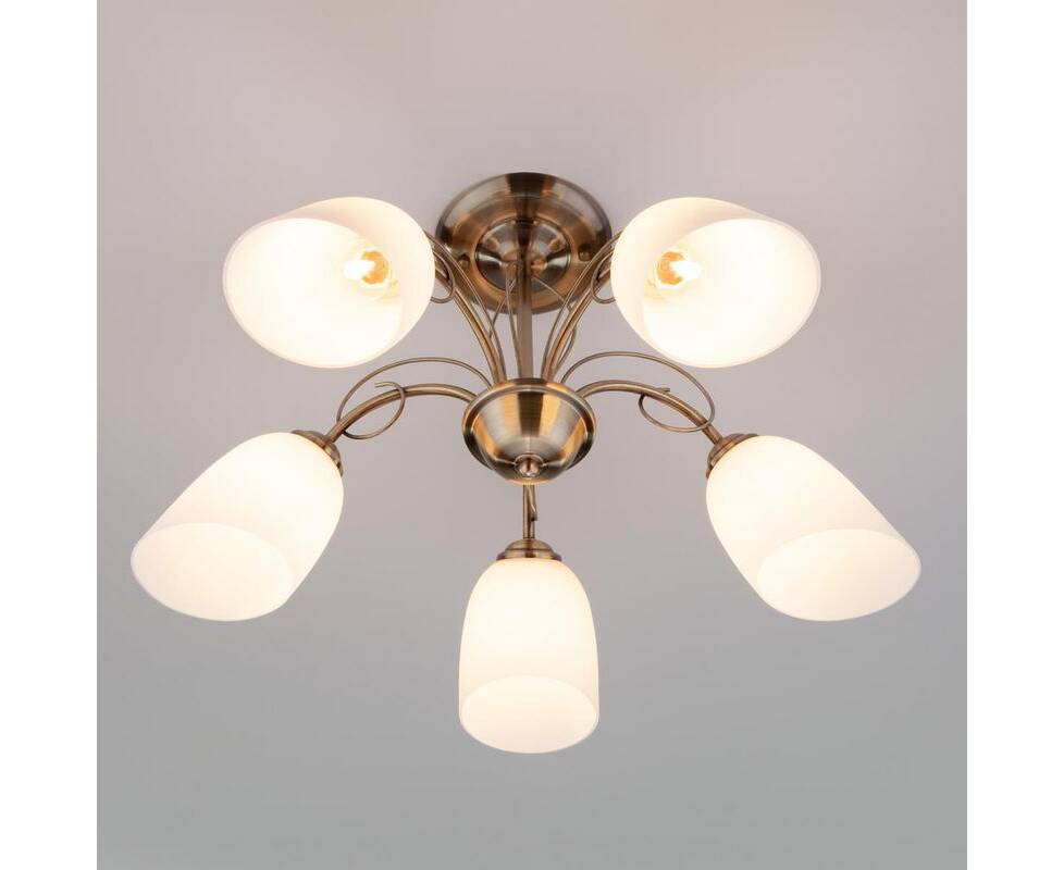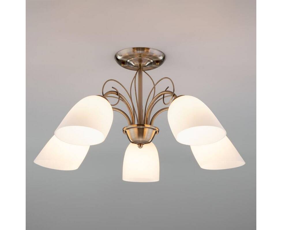 Потолочная люстра 30107/5 античная бронза Стефани от российской компании Eurosvet обладает непревзойденными качествами и отлично подойдет для спальни в современном стиле. Каркас из металла бронзового цвета, 5 ламп с цоколем E27 и белые стеклянные плафоны придают данной модели необыкновенный внешний вид. Люстра осветит комнату площадью до 24 м2, при использовании рекомендуемых производителем или эквивалентных по световому потоку LED ламп (в комплект не входят). Модель 30107/5 античная бронза Стефани можно устанавливать на натяжной потолок. *При установке на натяжной потолок допускается использовать только светодиодные LED лампы. Родиной бренда Eurosvet является РОССИЯ. Сборочное производство компании расположено в Китае, однако, это никак не сказывается на качестве продукции. Заявленный производителем Eurosvet гарантийный срок составляет 12 месяцев. Подвесная люстра Eurosvet 30107/5 античная бронза будет отличным выбором для покупки в интернет-магазине ГиперСвет. Мы оперативно доставим Ваш заказ по Калуге, Москве или в любой другой регион России.