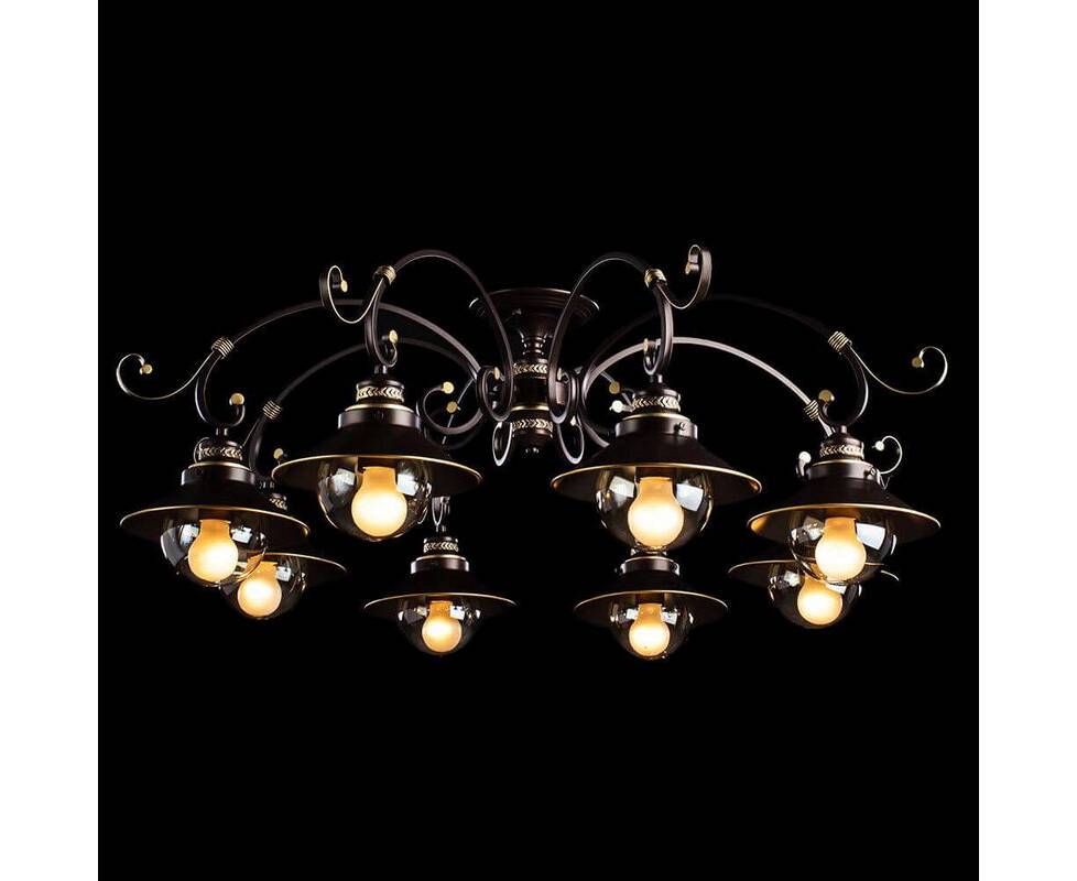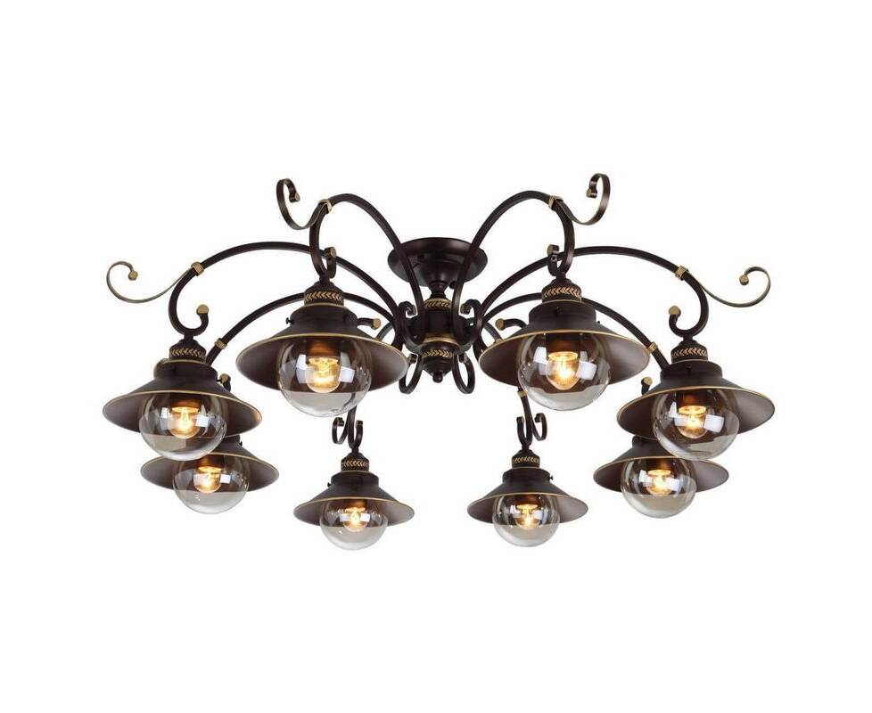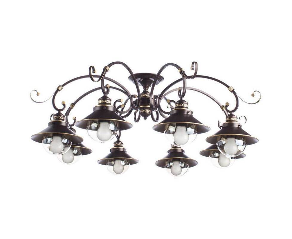 Потолочная люстра A4577PL-8CK от итальянской фирмы Arte Lamp станет изящным центром интерьера гостиной в морском стиле. Каркас из металла коричневого цвета, 8 ламп с цоколем E27 и прозрачные стеклянные плафоны придают данной модели неповторимый внешний вид. Люстра осветит комнату площадью до 27 м2, при использовании рекомендуемых производителем или эквивалентных по световому потоку LED ламп (в комплект не входят). Модель A4577PL-8CK можно устанавливать на натяжной потолок. *При установке на натяжной потолок допускается использовать только светодиодные LED лампы. Родиной бренда Arte Lamp является ИТАЛИЯ. Сборочное производство компании расположено в Китае, однако, это никак не сказывается на качестве продукции. Заявленный производителем Arte Lamp гарантийный срок составляет 12 месяцев. Потолочная люстра Arte Lamp A4577PL-8CK будет отличным выбором для покупки в интернет-магазине ГиперСвет. Мы оперативно доставим Ваш заказ по Калуге, Москве или в любой другой регион России.