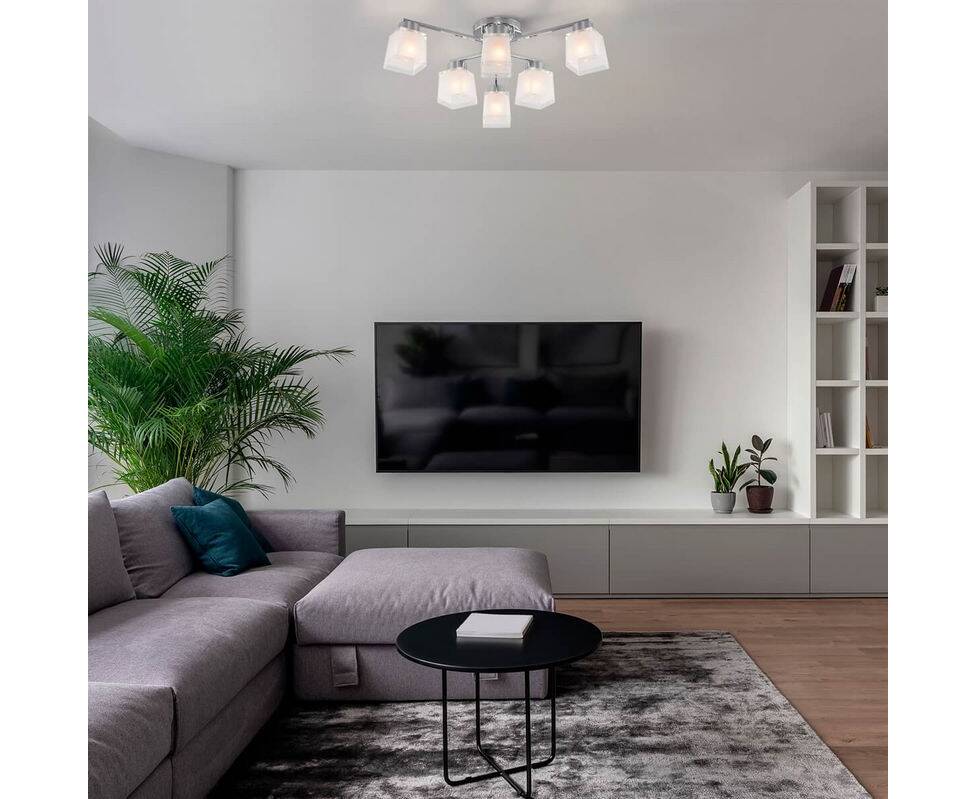 Потолочная люстра 30162/6 хром Delfi от российской компании Eurosvet замечательно подойдет для гостиной в современном стиле. Каркас из металла с хромированным покрытием, 6 ламп с цоколем E27 и белые стеклянные плафоны придают данной модели потрясающий внешний вид. Люстра осветит комнату площадью до 16 м2, при использовании рекомендуемых производителем или эквивалентных по световому потоку LED ламп (в комплект не входят). Модель 30162/6 хром Delfi можно устанавливать на натяжной потолок с использованием стандартной монтажной планки. *При установке на натяжной потолок допускается использовать только светодиодные LED лампы. Родиной бренда Eurosvet является РОССИЯ. Сборочное производство компании расположено в Китае, однако, это никак не сказывается на качестве продукции. Заявленный производителем Eurosvet гарантийный срок составляет 12 месяцев. Потолочная люстра Eurosvet Delfi 30162/6 хром будет отличным выбором для покупки в интернет-магазине ГиперСвет. Мы оперативно доставим Ваш заказ по Калуге, Москве или в любой другой регион России.