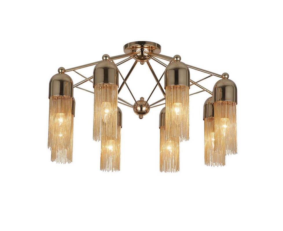 Потолочная люстра 2739-8P Zaria от немецкого производителя светильников Favourite будет великолепно смотреться в интерьере гостиной в модном стиле Арт-деко. Каркас из металла золотого цвета, 8 ламп с цоколем E14 и золотые металличекие плафоны придают данной модели уникальный внешний вид. Люстра осветит комнату площадью до 24 м2, при использовании рекомендуемых производителем или эквивалентных по световому потоку LED ламп (в комплект не входят). Модель 2739-8P Zaria можно устанавливать на натяжной потолок. *При установке на натяжной потолок допускается использовать только светодиодные LED лампы. Родиной бренда Favourite является ГЕРМАНИЯ. Заявленный производителем Favourite гарантийный срок составляет 3 года. Потолочная люстра Favourite Zaria 2739-8P будет отличным выбором для покупки в интернет-магазине ГиперСвет. Мы оперативно доставим Ваш заказ по Калуге, Москве или в любой другой регион России.
