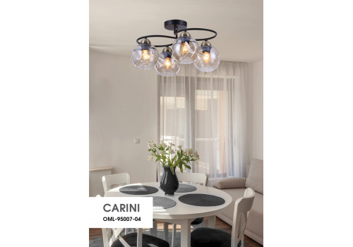 Потолочная люстра OML-95007-04 Carini от известного бренда Omnilux поможет великолепно дополнить интерьер кухни в стиле лофт. Прочный каркас черного цвета, 4 лампы с цоколем E27 и прозрачные стеклянные плафоны придают данной модели необыкновенный внешний вид. Производитель рекомендует использовать в данной модели лампы накаливания или эквивалентные по световому потоку светодиодные лампы (в комплект не входят). Модель OML-95007-04 Carini монтируется на потолок.. Родиной бренда Omnilux является КИТАЙ. Заявленный производителем Omnilux гарантийный срок составляет 2 года. Потолочная люстра Omnilux Carini OML-95007-04 будет отличным выбором для покупки в интернет-магазине ГиперСвет. Мы оперативно доставим Ваш заказ по Калуге, Москве или в любой другой регион России.