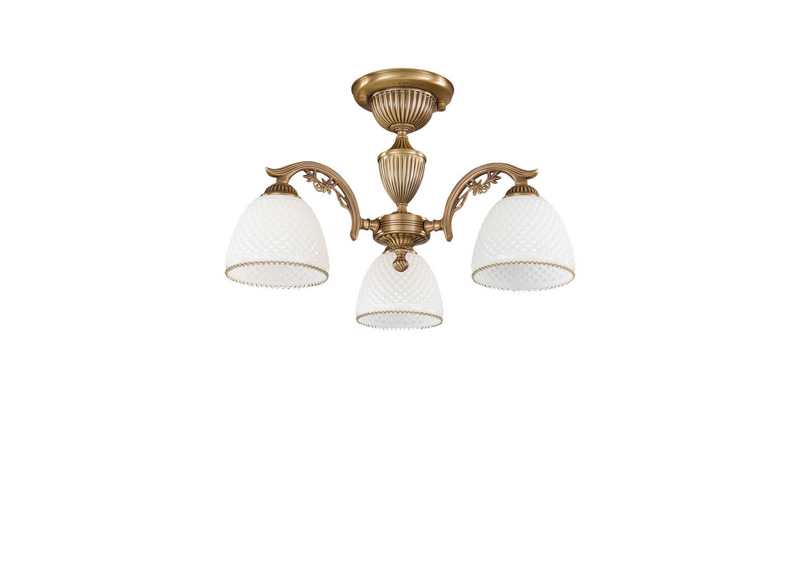 Потолочная люстра PL 8621/3 rosa 8601 от итальянской фирмы Reccagni Angelo может стать великолепным элементом освещения спальни в классическом стиле. Каркас из латуни цвета античной бронзы, 3 лампы с цоколем E27 и белые стеклянные плафоны придают данной модели потрясающий внешний вид. Люстра осветит комнату площадью до 9 м2, при использовании рекомендуемых производителем или эквивалентных по световому потоку LED ламп (в комплект не входят). Модель PL 8621/3 rosa 8601 можно устанавливать на натяжной потолок. *При установке на натяжной потолок допускается использовать только светодиодные LED лампы. Родиной бренда Reccagni Angelo является ИТАЛИЯ. Заявленный производителем Reccagni Angelo гарантийный срок составляет 6 месяцев. Потолочная люстра Reccagni Angelo PL 8621/3 будет отличным выбором для покупки в интернет-магазине ГиперСвет. Мы оперативно доставим Ваш заказ по Калуге, Москве или в любой другой регион России.