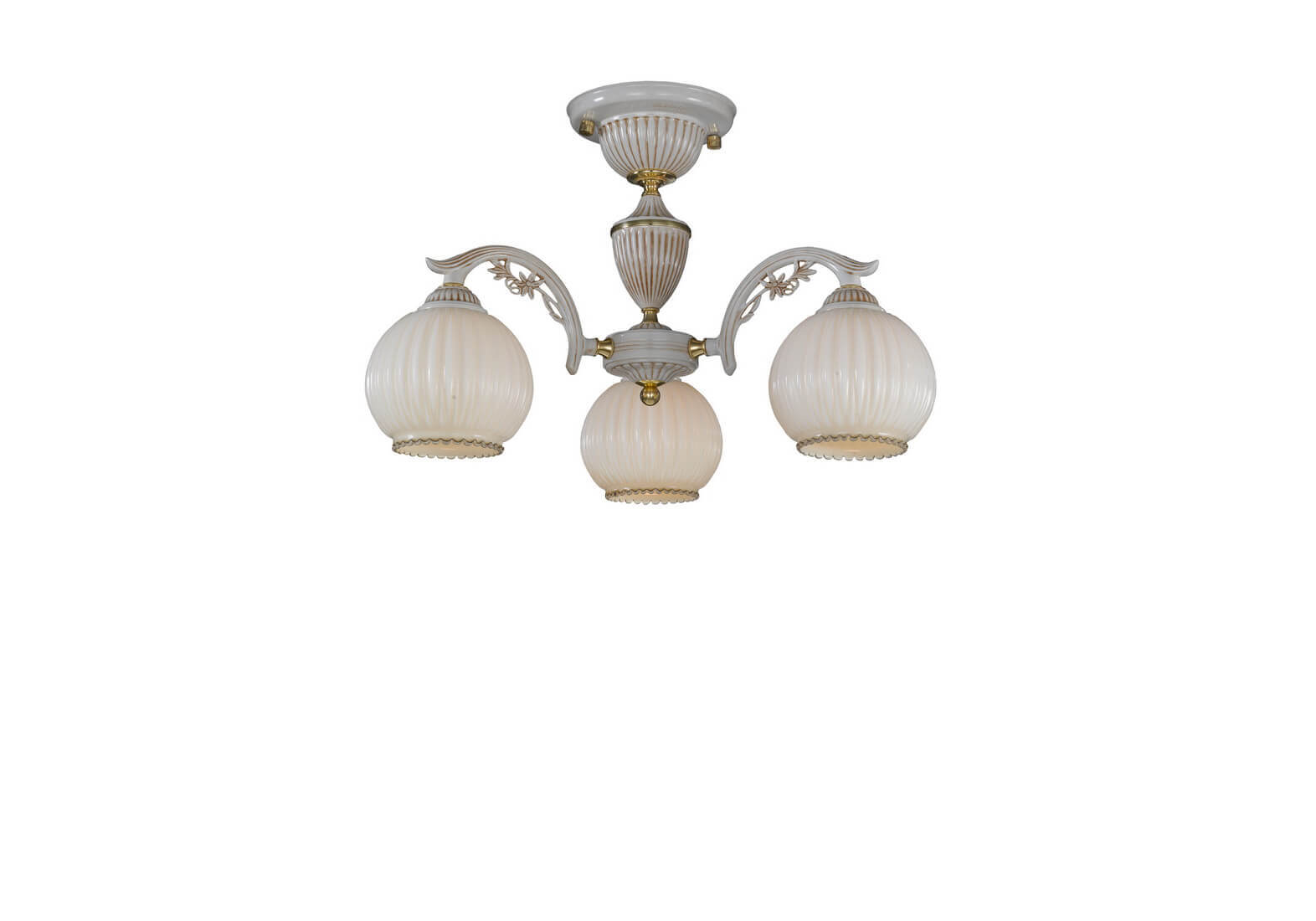 Потолочная люстра PL 9670/3 от итальянской фирмы Reccagni Angelo отлично подойдет, например, для спальни в классическом стиле. Каркас из латуни антично-белого цвета, 3 лампы с цоколем E27 и белые стеклянные плафоны придают данной модели великолепный внешний вид. Люстра осветит комнату площадью до 9 м2, при использовании рекомендуемых производителем или эквивалентных по световому потоку LED ламп (в комплект не входят). Модель PL 9670/3 9670 можно устанавливать на натяжной потолок. *При установке на натяжной потолок допускается использовать только светодиодные LED лампы. Родиной бренда Reccagni Angelo является ИТАЛИЯ. Заявленный производителем Reccagni Angelo гарантийный срок составляет 6 месяцев. Потолочная люстра Reccagni Angelo PL 9670/3 будет отличным выбором для покупки в интернет-магазине ГиперСвет. Мы оперативно доставим Ваш заказ по Калуге, Москве или в любой другой регион России.