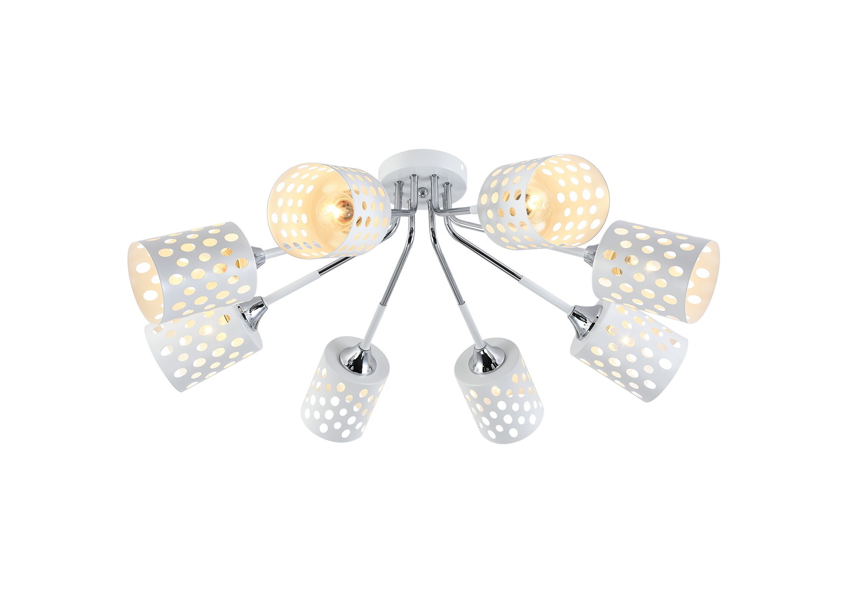 Потолочная люстра 11355-0.3-08A WH+CR от итальянской фирмы Reluce может стать великолепным элементом освещения гостиной в стиле модерн. Прочный каркас, 8 ламп с цоколем E27 и высококачественное покрытие придают данной модели уникальный внешний вид. Люстра осветит помещение площадью до 64 м2, при использовании рекомендуемых производителем или эквивалентных по световому потоку LED ламп (в комплект не входят). Модель 11355-0.3-08A WH+CR монтируется на потолок с использованием стандартной монтажной планки. Родиной бренда Reluce является ИТАЛИЯ. Потолочная люстра Reluce 11355-0.3-08A WH+CR будет отличным выбором для покупки в интернет-магазине ГиперСвет. Мы оперативно доставим Ваш заказ по Калуге, Москве или в любой другой регион России.