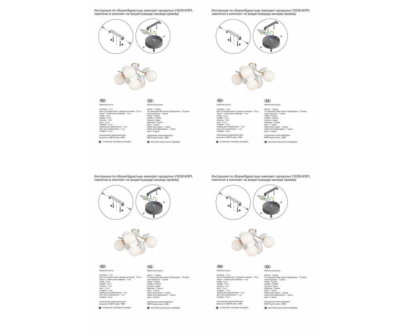 Мощность ламп, Вт: