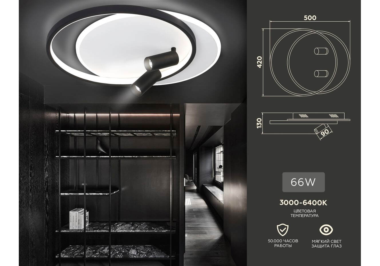 Подходит для низких потолков: